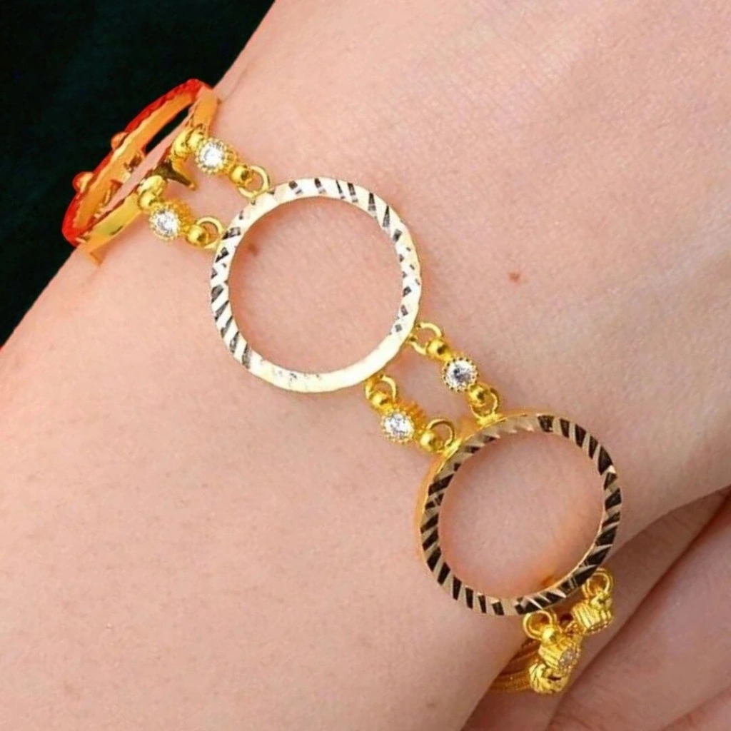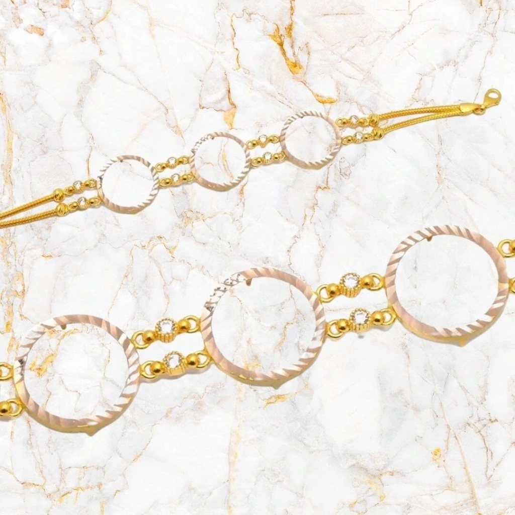 14 Ayar Altın 3 Çeyrekli Bileklik 8,46 Gram. Evla Kuyumculuk'un özel tasarımı olan 14 Ayar Altın 3 Çeyrekli Bileklik, göz alıcı ve zarif bir takı parçasıdır. Bu bileklik, yüksek kaliteli 14 ayar altından üretilmiş olup, özgün tasarımıyla dikkat çeker. Bilekliğin ana özelliği, 8,46 gram ağırlığındaki üç adet altın çeyrek dahilidir. Altın çeyrekler, bilekliğe değerli bir detay katar ve çekiciliğini vurgular. Bu detaylar, bilekliğin özgün ve dikkat çekici bir parçasıdır.