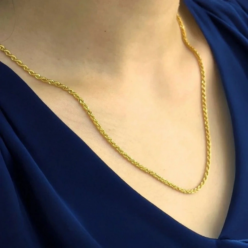 Bu 14 ayar altın halat zincir, zarif ve modern bir görünüm sunar. 60 cm uzunluğuyla rahat kullanım sağlayan bu zincir, farklı kıyafetlerle uyum gösterir.