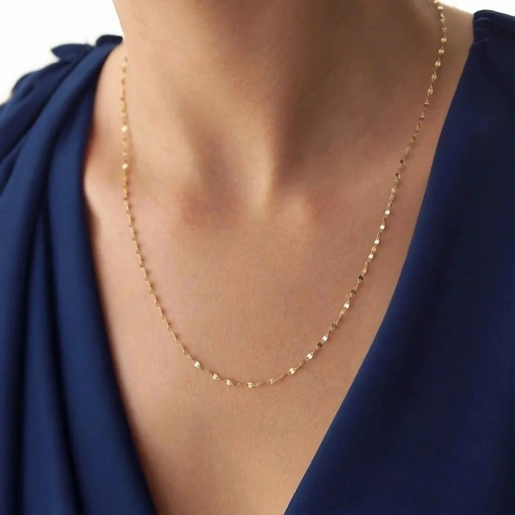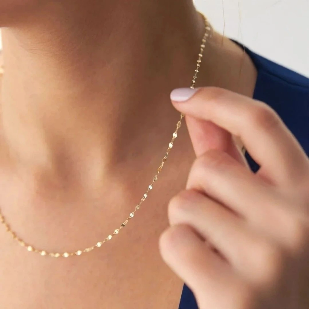 Evla Kuyumculuk olarak, şıklığı ve zarafeti bir arada sunan bir seçenekle karşınızdayız: 14 Ayar Altın Ayna Zincir.