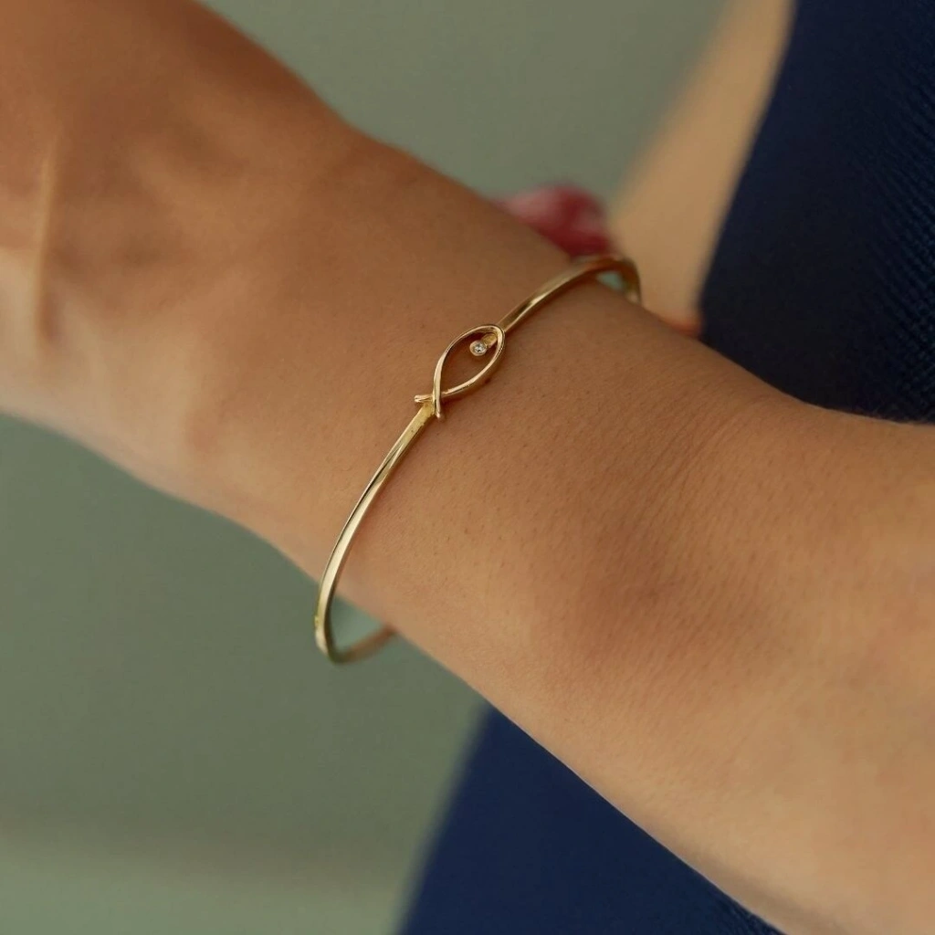 14 Ayar Altın Balık Kelepçe 4,25 Gram: Evla Kuyumculuk olarak, özgün ve etkileyici bir seçenek sunuyoruz: 14 Ayar Altın Balık Kelepçe! Bu özel ve şık tasarım, tarzınıza değer katmak için mükemmel bir tercih olacaktır. Bu benzersiz kelepçe, 14 ayar altın kullanılarak üretilmiştir ve balık figürünün zarif bir yorumunu sunmaktadır. Altının parlaklığı ve balığın incelikli detayları, bu tasarımı göz alıcı ve özgün kılmaktadır.