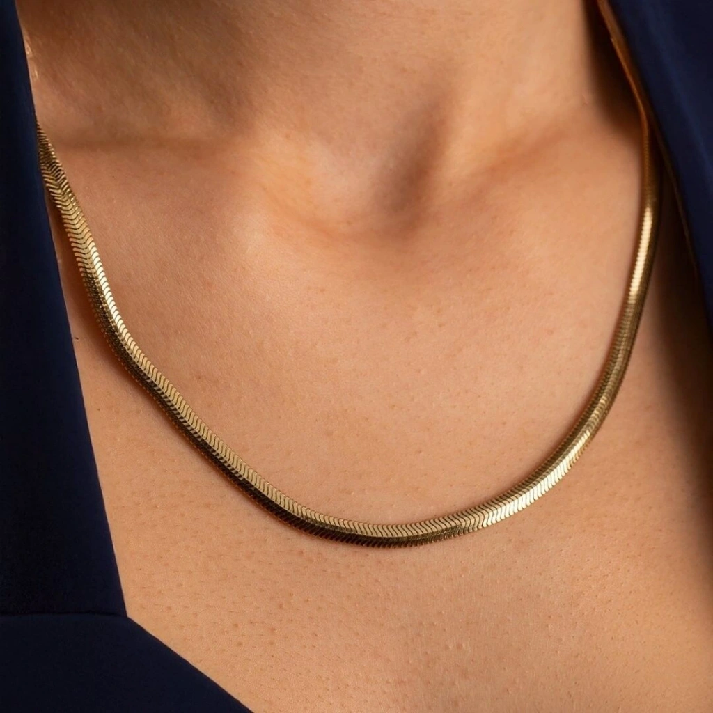 zarif ve dayanıklı yapısıyla öne çıkan, klasik bir takıdır. 15,75 gram ağırlığındaki bu zincir, balık sırtı deseni ile hem şık hem de dikkat çekici bir görünüme sahiptir. Yassı ve parlak halkalarıyla tasarlanan zincir, ışığı mükemmel bir şekilde yansıtarak, altının doğal parlaklığını ön plana çıkarır.