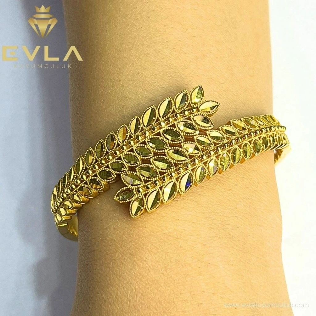 Başak deseni, zarafeti ve doğallığı simgeleyen geleneksel bir motif olup, bu 14 ayar altın kelepçede modern bir dokunuşla sunulmuştur. 15,58 gram ağırlığındadır . Hem şık hem de anlamlı bir tasarım arayanlar için mükemmel bir seçimdir. Başak deseni, bereketi ve bolluğu simgelerken, altının parlaklığı ve kalitesiyle birleşerek özel bir takı haline gelmiştir.