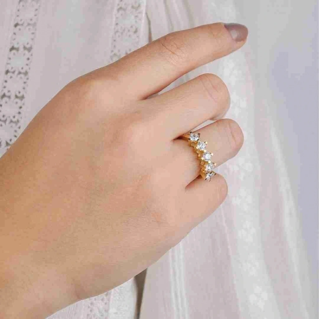 - Taşlar: Beş adet pırıl pırıl elmas, yüzüğün göz alıcı tasarımını tamamlar. Elmasların kesimleri ve berraklıkları, yüzüğün ışığı mükemmel bir şekilde yansıtmasını sağlar.