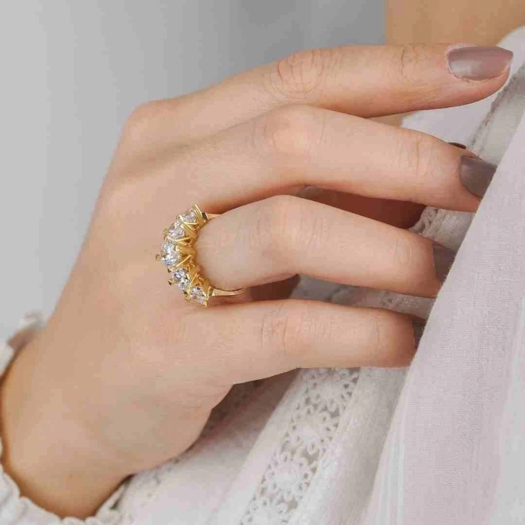 Tasarım: Beştaş tasarımıyla dikkat çeken bu yüzük, klasik ve şık bir görünüm sunar. Beş adet taşın sıralandığı tasarımıyla, yüzüğe göz alıcı bir parlaklık ve ışıltı katmaktadır.