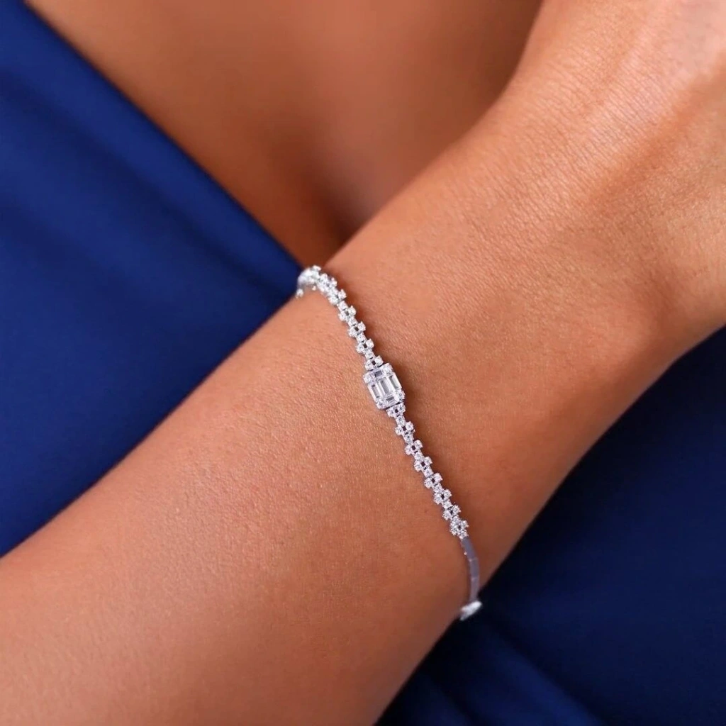 Bileklik, 19 cm uzunluğundadır ve baget kesimli zincir şeklindedir.