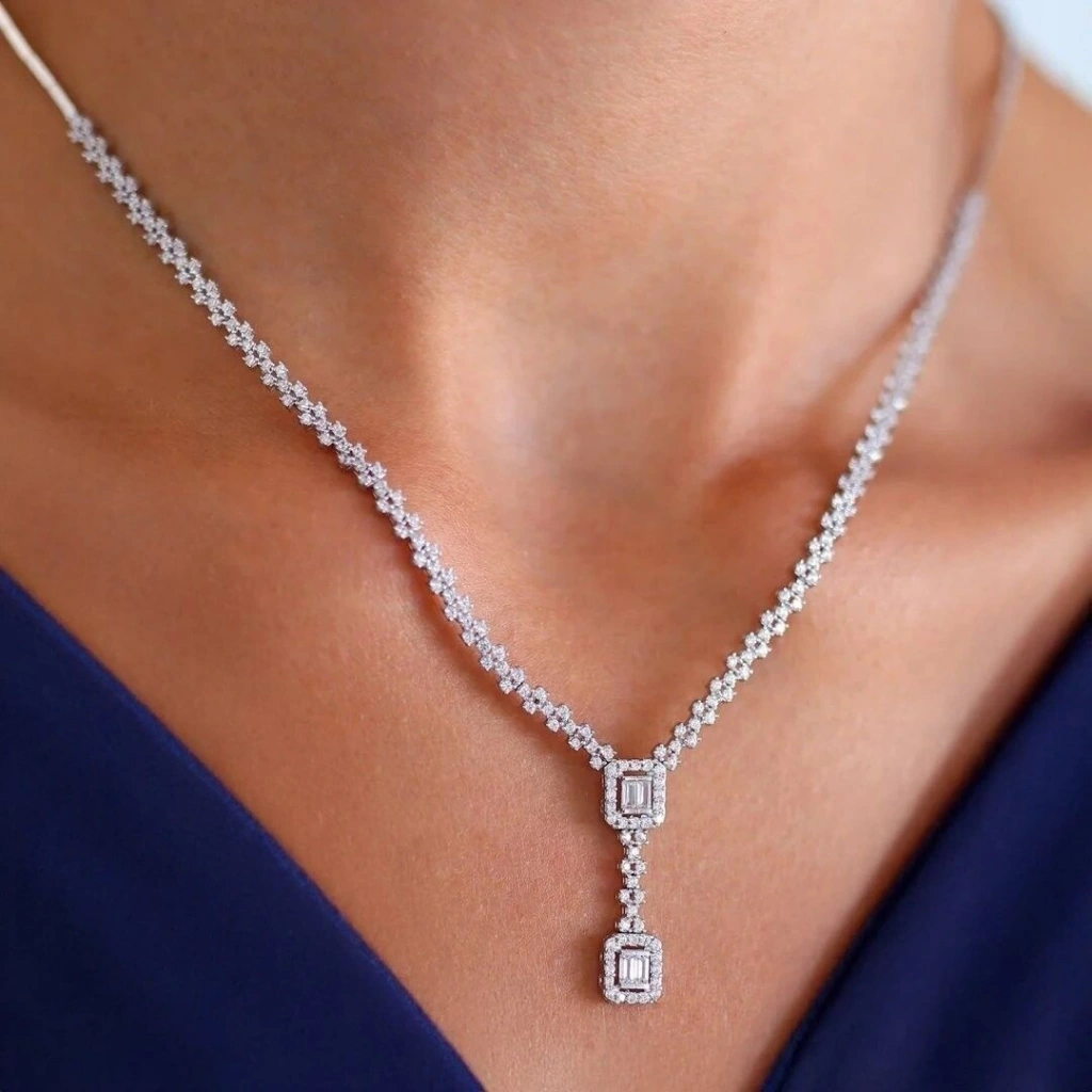 Kolye, 45 cm uzunluğundadır ve baget kesimli zincir şeklindedir.