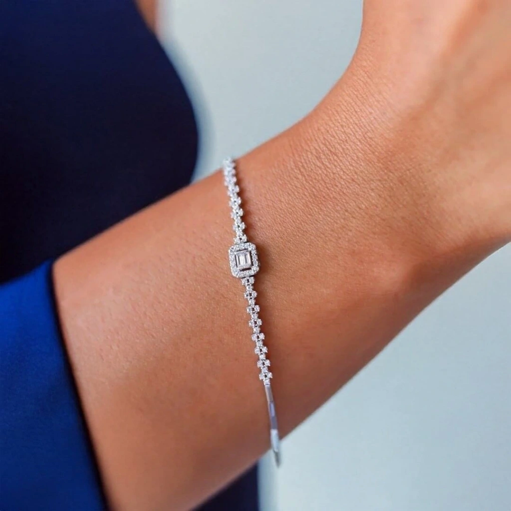 Bileklik, 19 cm uzunluğundadır ve baget kesimli zincir şeklindedir.