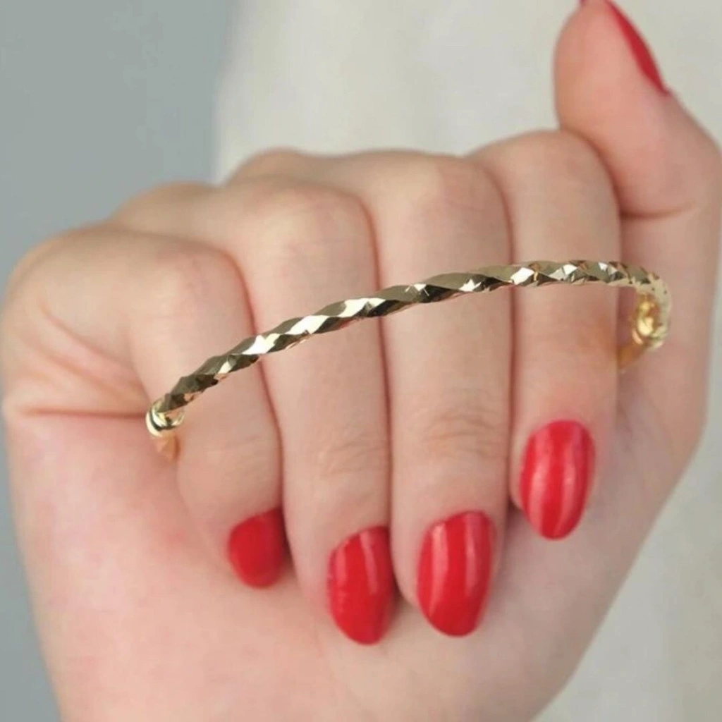 Bu zarif ve şık 14 Ayar Altın Burgu Sade Kelepçe, 5,50 gram ağırlığı ile her anınıza zarafet katmak için tasarlandı. Minimalist tasarımı ve burgu detayları ile hem günlük kullanıma uygun hem de özel günlerinizde stilinizi tamamlayacak mükemmel bir aksesuar.