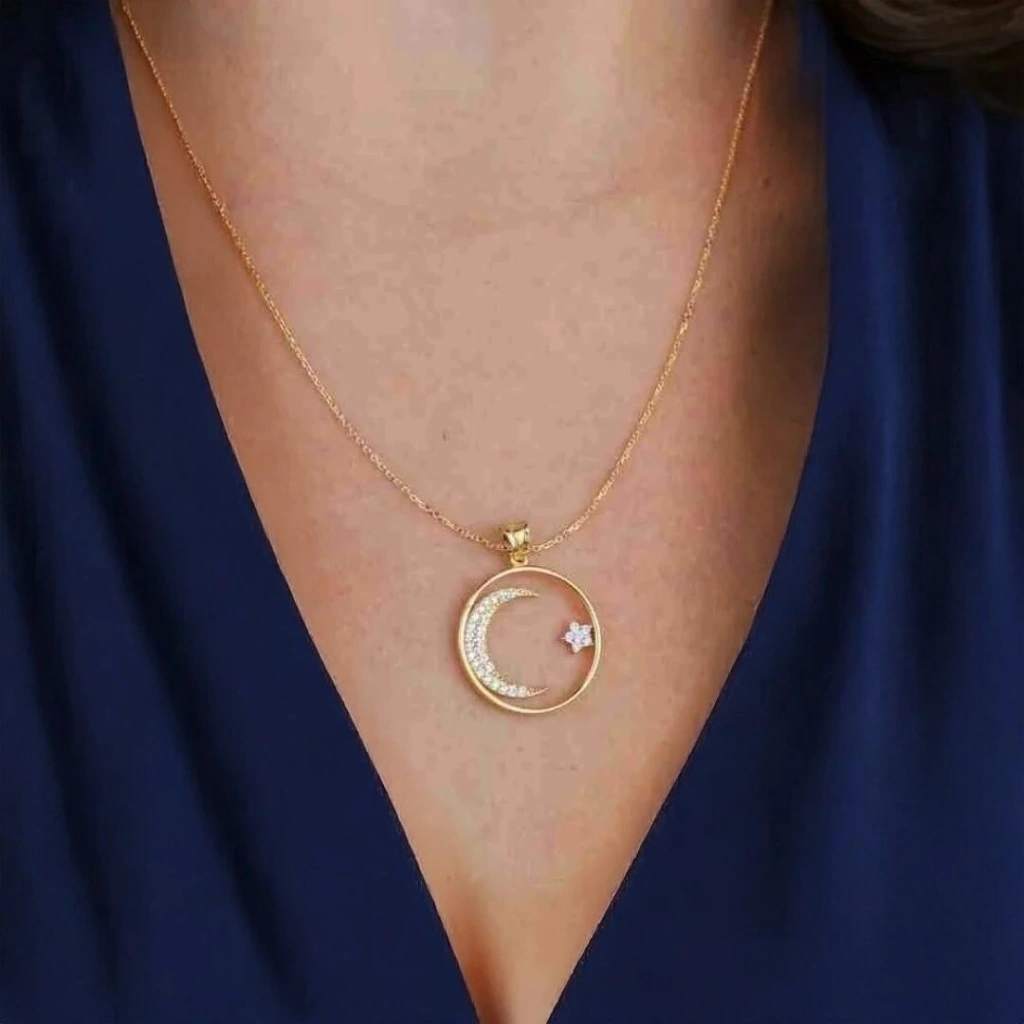 14 Ayar Altın Çerçeve Ayyıldız Kolye 2,76 Gram:
