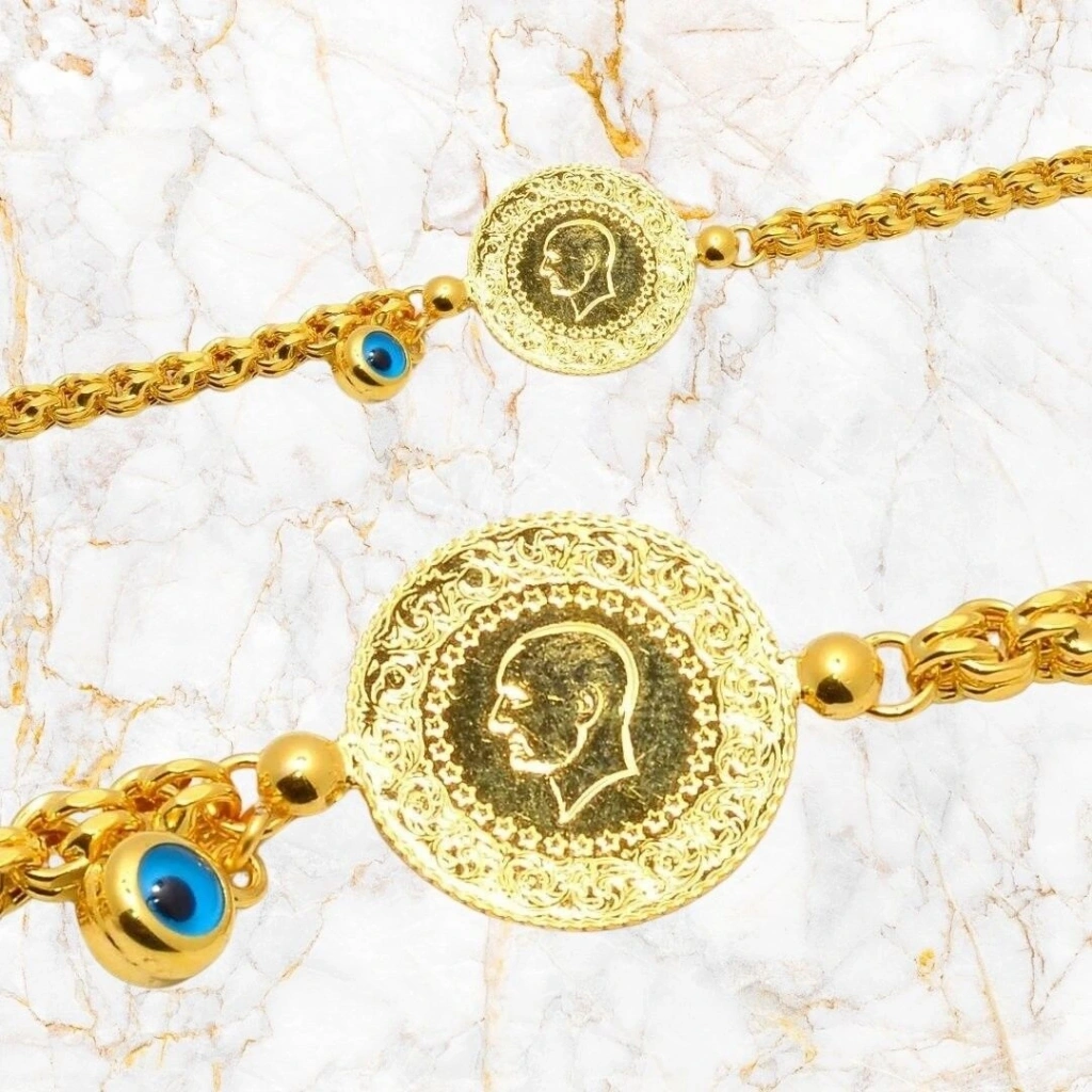14 Ayar Altın Çeyrekli Bileklik 6,58 gram çeyrek dahil.