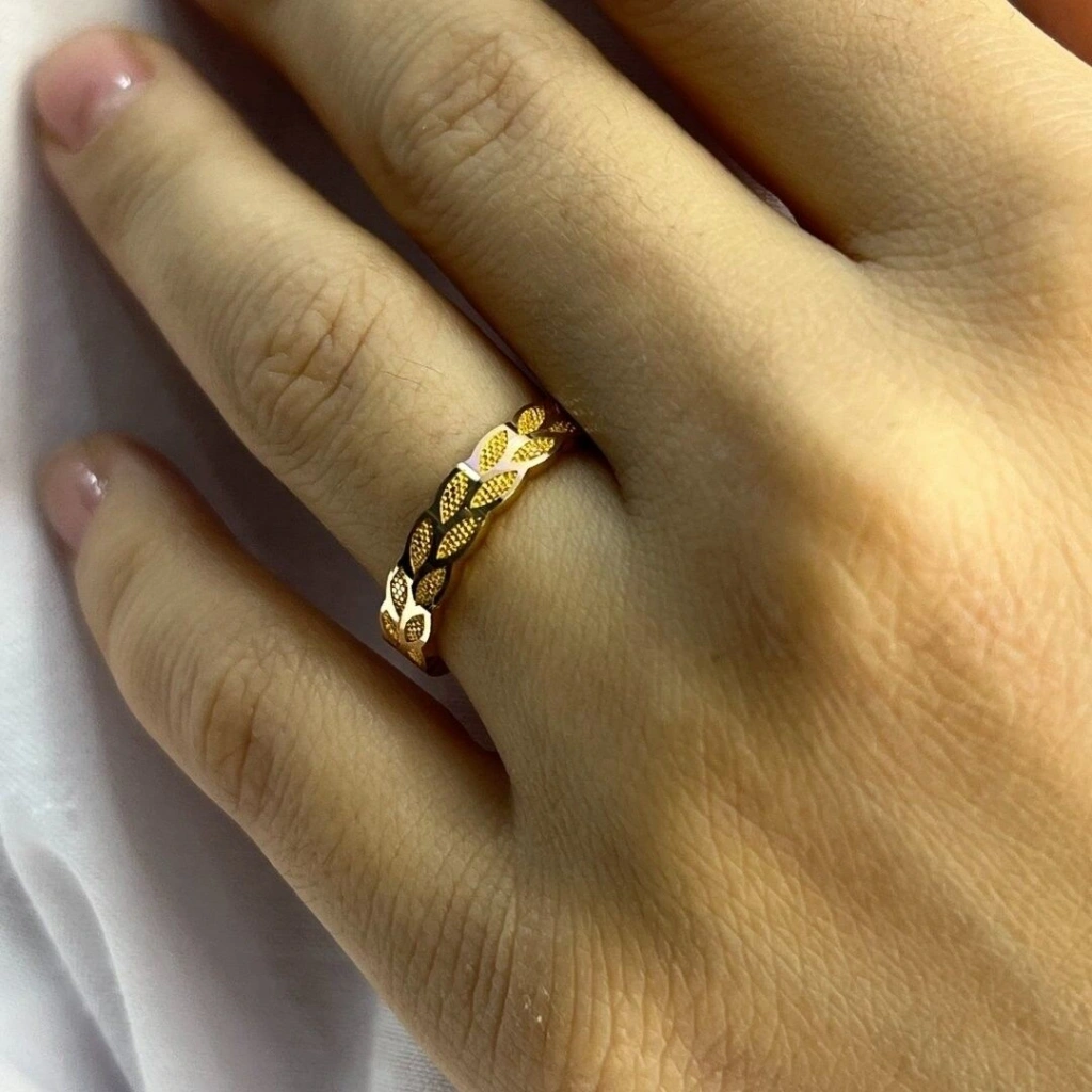 14 ayar altın çiftli başak yüzük,Doğal ve organik formlardan ilham alınarak tasarlanmıştır . Başak motifleriyle sofistike bir görünüm sunar. Çiftli başak tasarımı, yüzüğe hem şıklık hem de farklı bir dokunuş katarken, altının parlaklığıyla göz alıcı bir duruş sağlar.