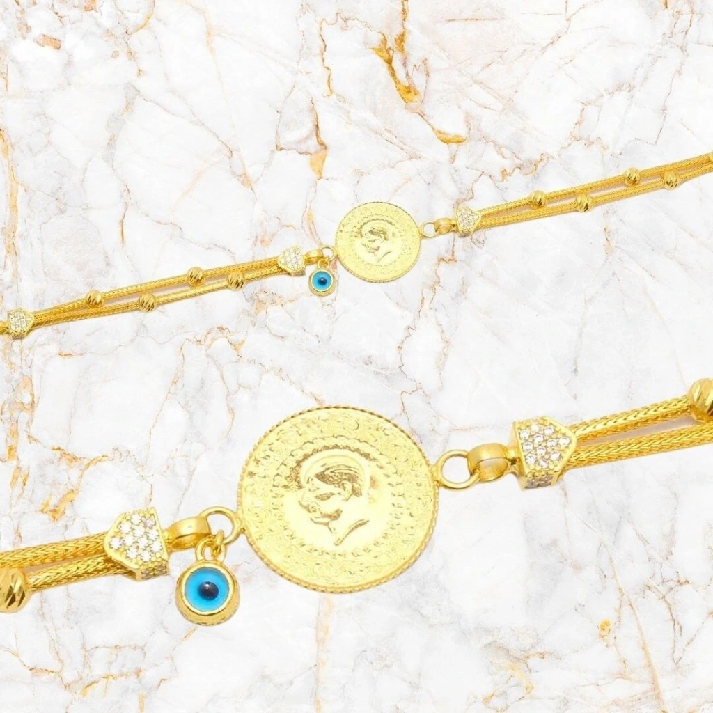 14 Ayar Altın Çiftli Dorika Çeyrekli Bileklik 9,32 Gram ÇEYREK DAHİLDİR.