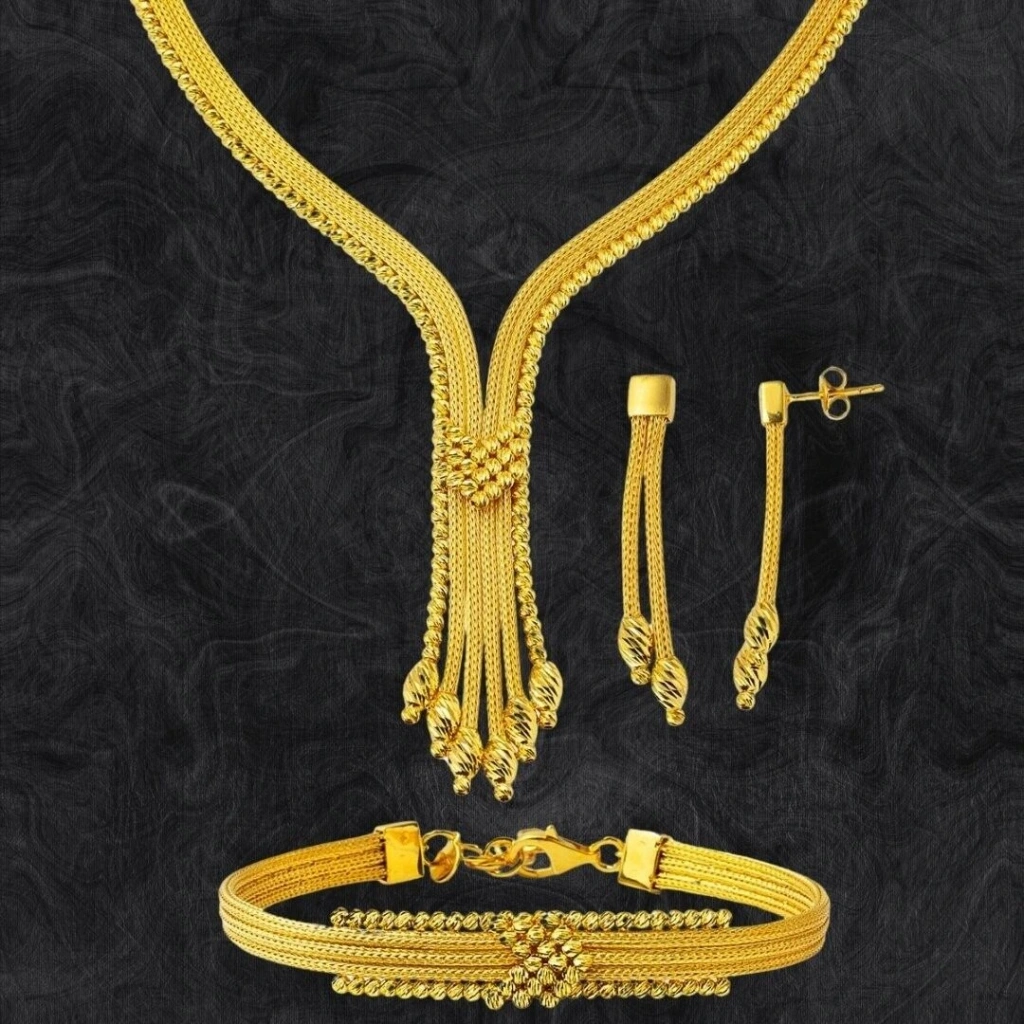 Evla Kuyumculuk’un 14 Ayar Altın Dorikalı Hasır Örgü Set Takımı 38,00 Gram modeli, modern ve zarif bir tasarıma sahip, her yaştan kadına hitap eden bir aksesuardır. Set takımı, hasır deseninin modern görünümünü ve dorikaların ışıltısını altınla buluşturmaktadır.