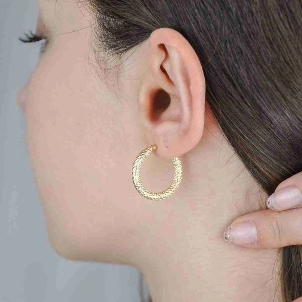 14 Ayar Altın Ezme Yılan Halka Küpe 2,10 Gram: 14 Ayar Altın Ezme Yılan Halka Küpe, zarif ve etkileyici bir görünüm sunan özel bir mücevherdir. Bu özel tasarım,özenle seçilmiş 14 ayar altın kullanılarak yapılmış ve sadece 2,10 gram ağırlığındadır. Bu halka küpe, ezme yılan detaylarıyla dikkat çeken bir görünüm sunar. İnce ve zarif altın şeritleri, halkanın üzerinde yılan desenini oluşturarak küpeye çarpıcı bir hava katar. Bu tasarım, tarzınızı vurgulayarak size sofistike bir görünüm kazandırır.