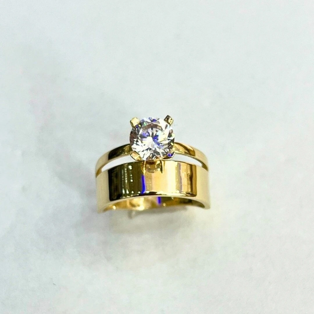 14 Ayar Altın Geniş Klasik Tektaşlı Alyans, zarafetin ve klasik tasarımın birleşimi olan özel bir mücevherdir.