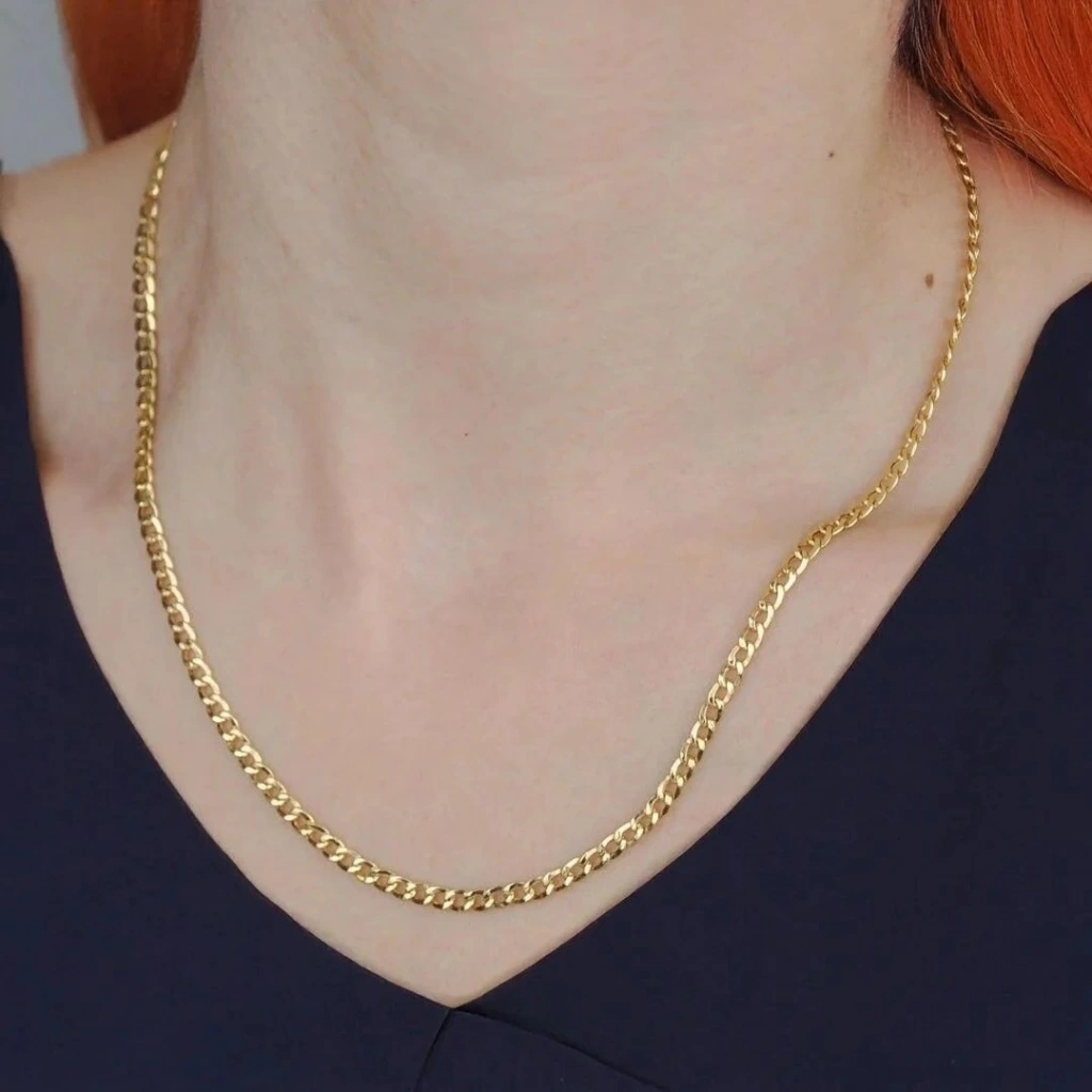 Evla Kuyumculuk'un 14 Ayar Altın Gurmet Zincir ürünü, şıklığı ve zarafeti bir arada sunan özel bir mücevherdir. Bu zincir, yüksek kaliteli 14 ayar altın malzemeden üretilmiştir ve 5,47 gram ağırlığındadır. Gurmet zincirin zarif ve modern tasarımı, her türlü stil ve kıyafetle mükemmel bir uyum sağlar. Altın zincirin özel gurmet halkaları, zincire benzersiz bir dokunuş katar. Bu zincir, günlük kullanımda veya özel etkinliklerde şıklığınızı tamamlar.