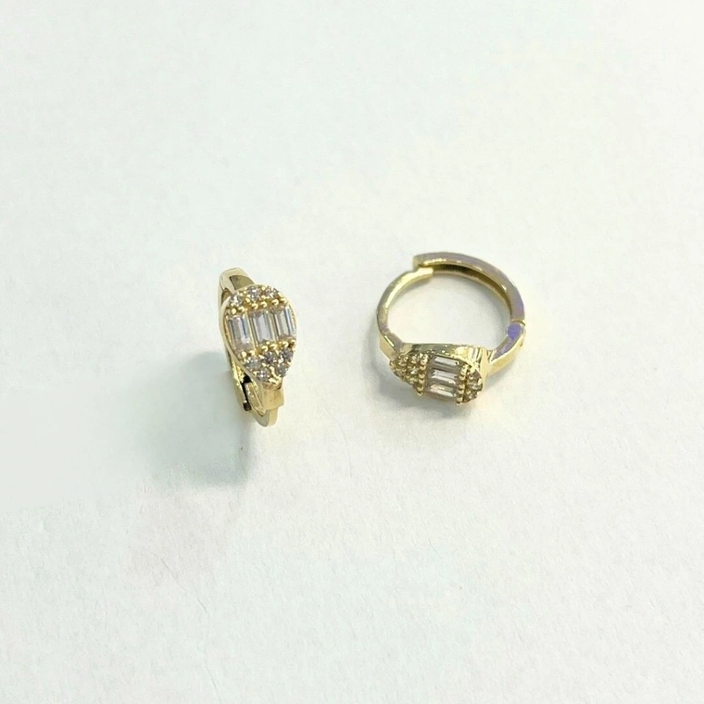 Bu 14 ayar damla baget küpe, özel davetler, iş toplantıları ve günlük şıklığınız için ideal bir tercihtir. Hem klasik hem de çağdaş kıyafetlerle mükemmel bir uyum sağlar, her anınıza ışıltı katacaktır.