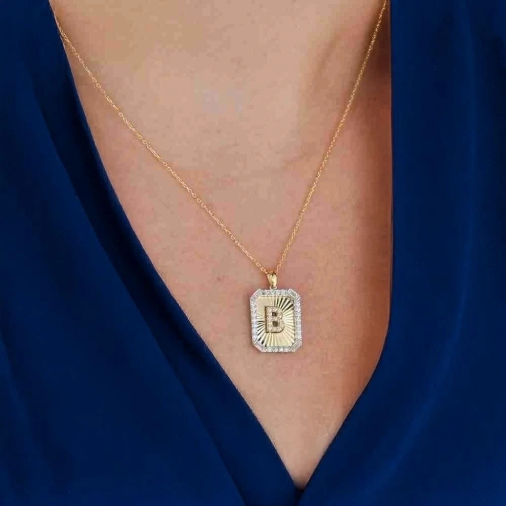 14 Ayar Altın Harfli Kolye Bagetli 2,68 Gram:Evla Kuyumculuk'un özgün ve kişiselleştirilebilir tasarımlarından biri olan 14 Ayar Altın Harfli Kolye Bagetli, zarafeti ve anlamı bir arada sunan bir parçadır. Bu özel kolye, 2,68 gram ağırlığındaki 14 ayar altınla özenle işlenmiştir. Kolyenin bagetli harf şeklindeki tasarımı, modern ve şık bir stil sunarken, altının parlaklığı da dikkat çekici bir şekilde öne çıkar. Evla Kuyumculuk, bu kolyeyi özgün bir şekilde tasarlamış ve her ayrıntısına özen göstermiştir.