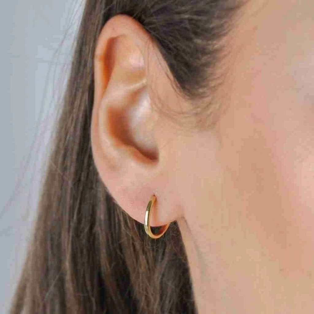 İnce ve küçük halka modeli ile dikkat çeken küpe, zarif ve gösterişli bir görünüme sahip. Vidalı kapama özelliğine sahip küpe, kulakta sağlam bir duruş sergiliyor. Günlük kullanıma uygun olan küpe, uzun yıllar kullanabileceğiniz bir aksesuar.