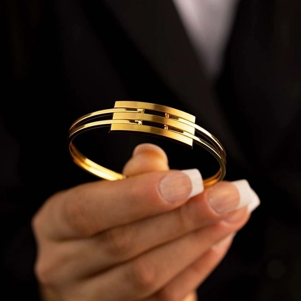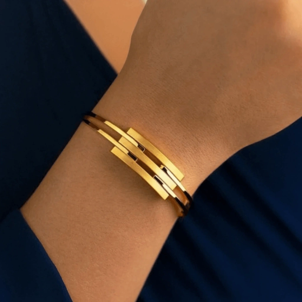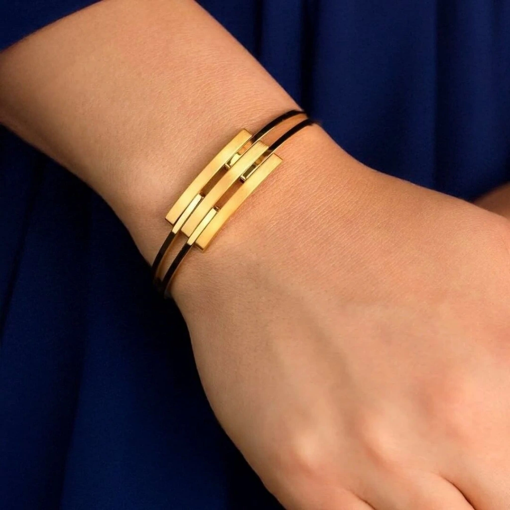 Kaburga Kelepçe tasarımı, modern ve cesur bir stil sunar. Altın kaburgaların birleştiği noktalardan oluşan bu kelepçe, bileğinizi zarifçe saran ve dikkat çeken bir aksesuar olarak öne çıkar. Kaburga detayları, kelepçeye zarif bir hareketlilik ve dokunuş katarak şıklığı artırır