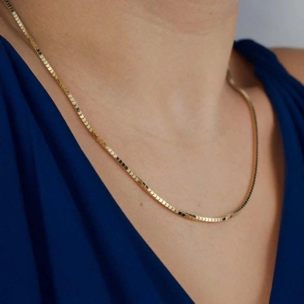 Evla Kuyumculuk tarafından özenle üretilen 14 ayar altın küp kare zincir, şık ve modern tasarımıyla dikkat çekiyor. 4,90 gram ağırlığındaki zincir, 50 cm uzunluğundadır. Küp kare desenli zincir, her yaştan kadına hitap eden bir modeldir.