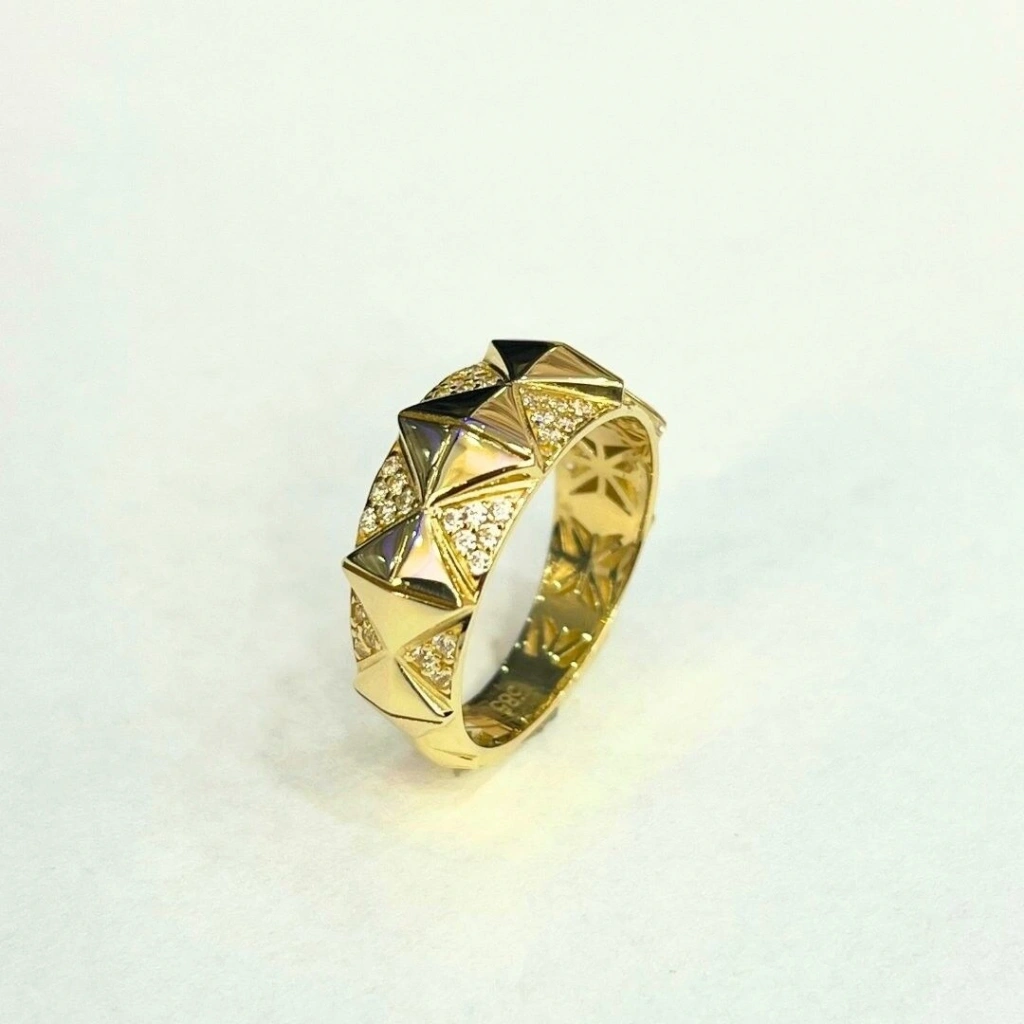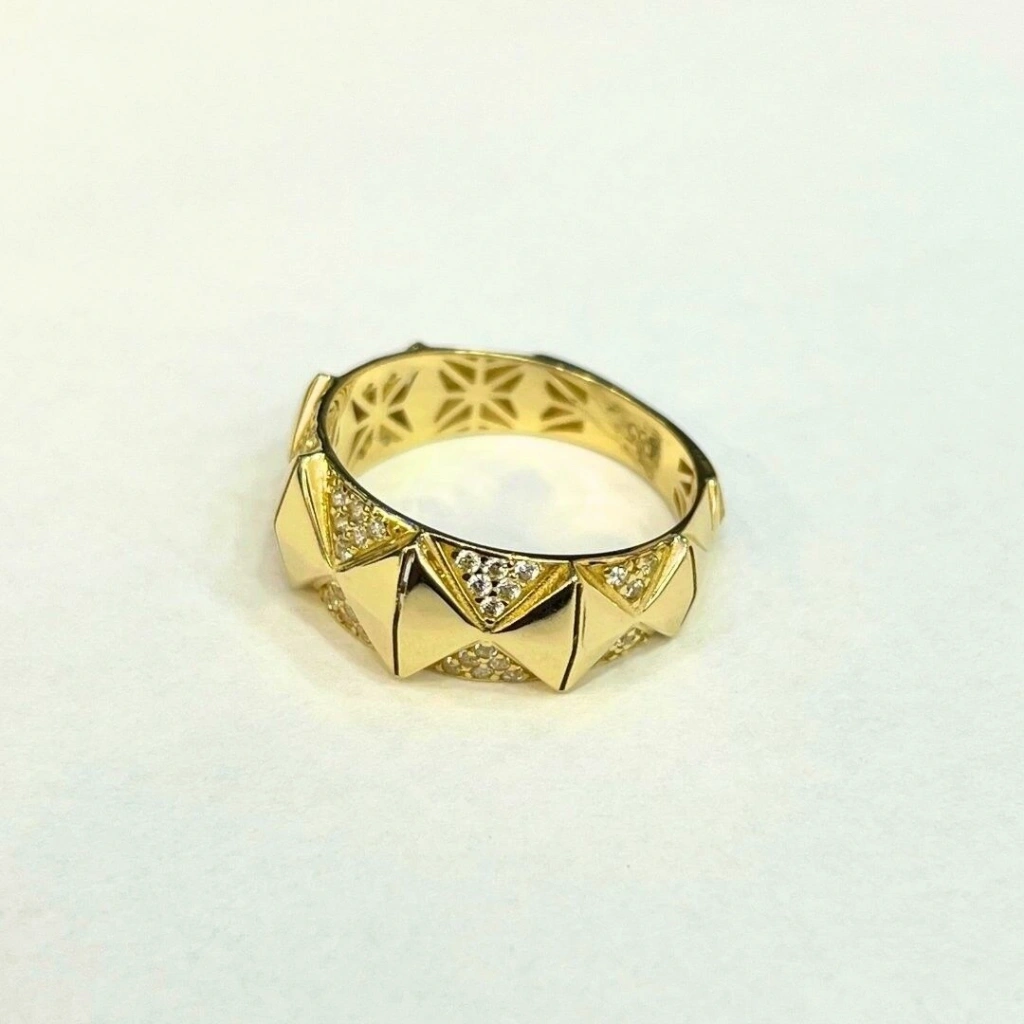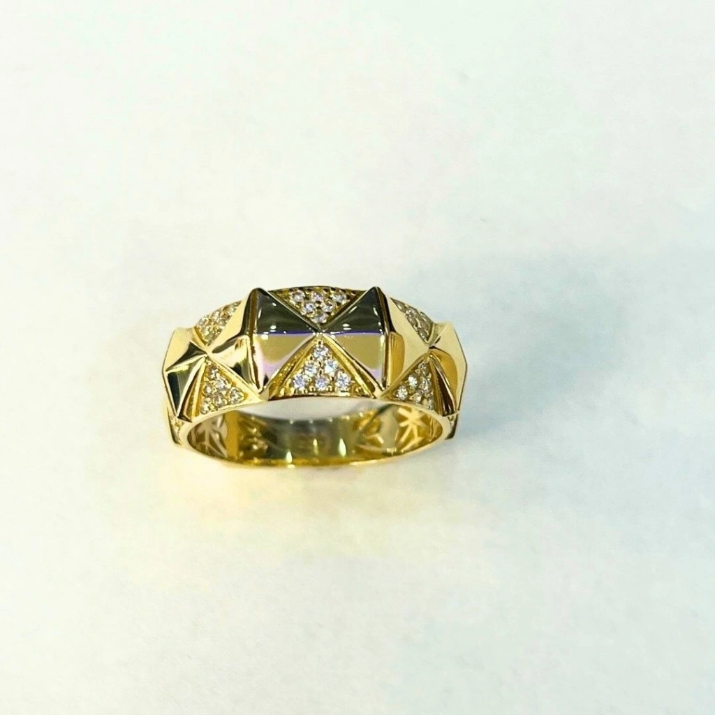 Küp formunda tasarlanmış bu yüzük, geometrik çizgileriyle zarif ve sofistike bir görünüm sunar.