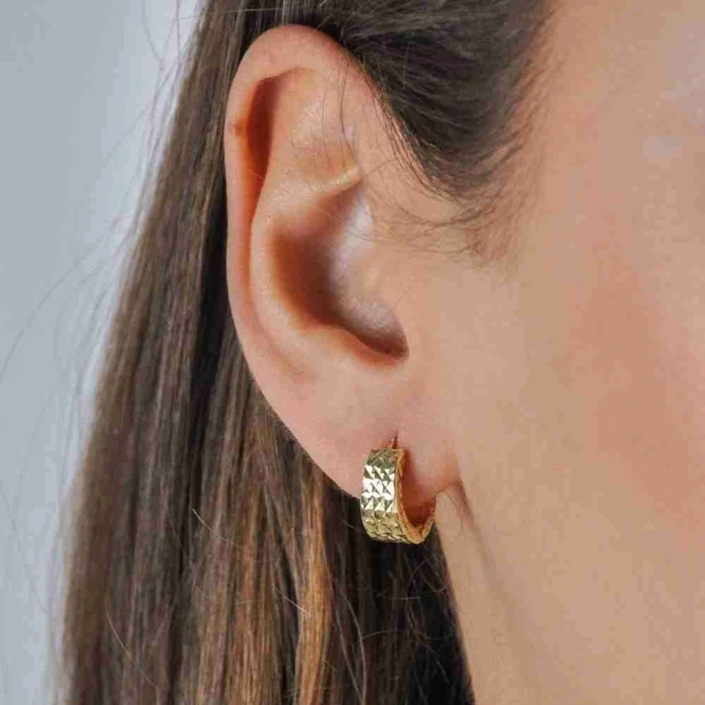 14 Ayar Altın Lazerli Süzme Halka Küpe 1,85 Gram: 14 Ayar Altın Lazerli Süzme Halka Küpe, zarif bir tasarımı ve lüks bir görünümü bir araya getiren benzersiz bir mücevherdir. Bu özel tasarım, özenle seçilmiş 14 ayar altın ile yapılmıştır ve 1,85 gram ağırlığındadır. Bu halka küpe, lazerle işlenmiş detaylarıyla dikkat çekmektedir. İnce ve hassas lazer kesimleri, küpenin yüzeyinde zarif bir desen oluşturur. Bu desen, ışığı yansıtarak küpeye derinlik ve parlaklık katmaktadır.