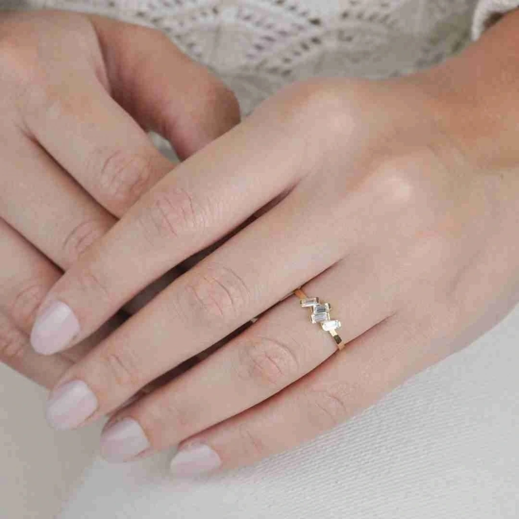 Tasarım: Mini baget kesimli taş detayıyla dikkat çeken bu yüzük, zarif ve minimalist bir görünüm sunar. Basit ve şık tasarımıyla günlük kullanıma uygun bir seçenektir.