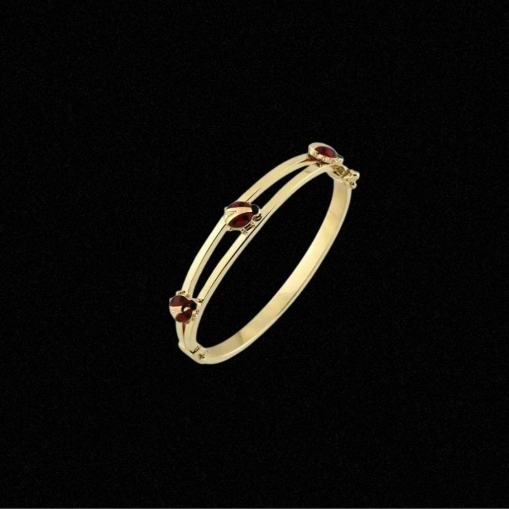 14 Ayar Altın Motifli Çocuk Kelepçe 6,95 Gram : Bu 14 Ayar Altın Uğur Böceği Motifli Çocuk Kelepçesi, Evla Kuyumculuk tarafından özenle tasarlanmış ve üretilmiş bir mücevherat ürünüdür. Yüksek kaliteli malzemeler kullanılarak yapılmış ve çocuklar için özel olarak tasarlanmıştır.Bu altın kelepçe, 14 ayar altın kullanılarak üretilmiştir ve toplamda 6,95 gram ağırlığındadır. Göz motifli çocuk kelepçesi tasarımına sahip olan bu mücevher, sevimli ve zarif bir görünüm sergiler. Altın rengi, kelepçenin değerini ve şıklığını yansıtır.