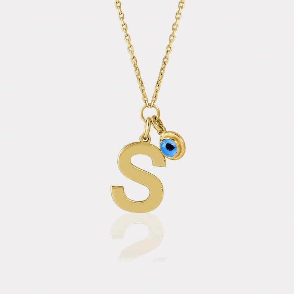 Evla Kuyumculuk 14 Ayar Altın Nazar Boncuklu Harf Kolye: 2,33 Gram