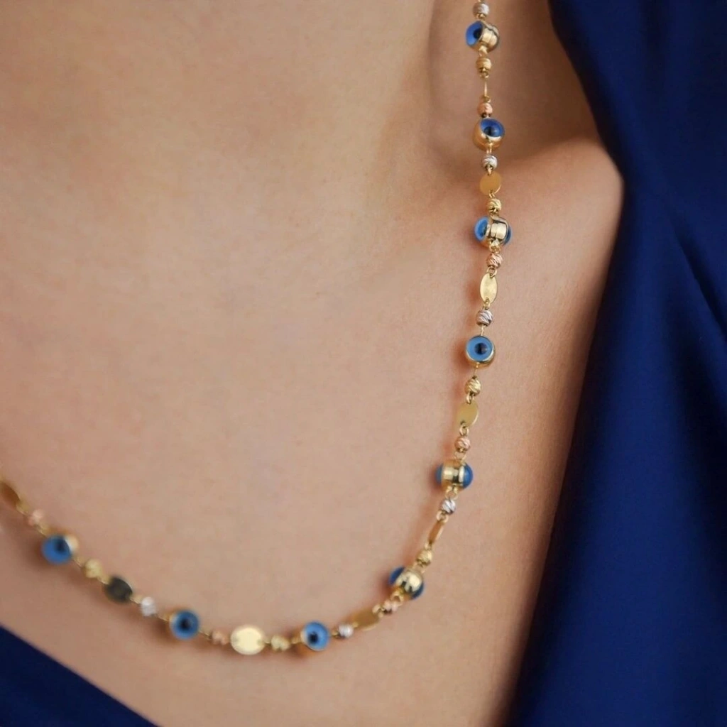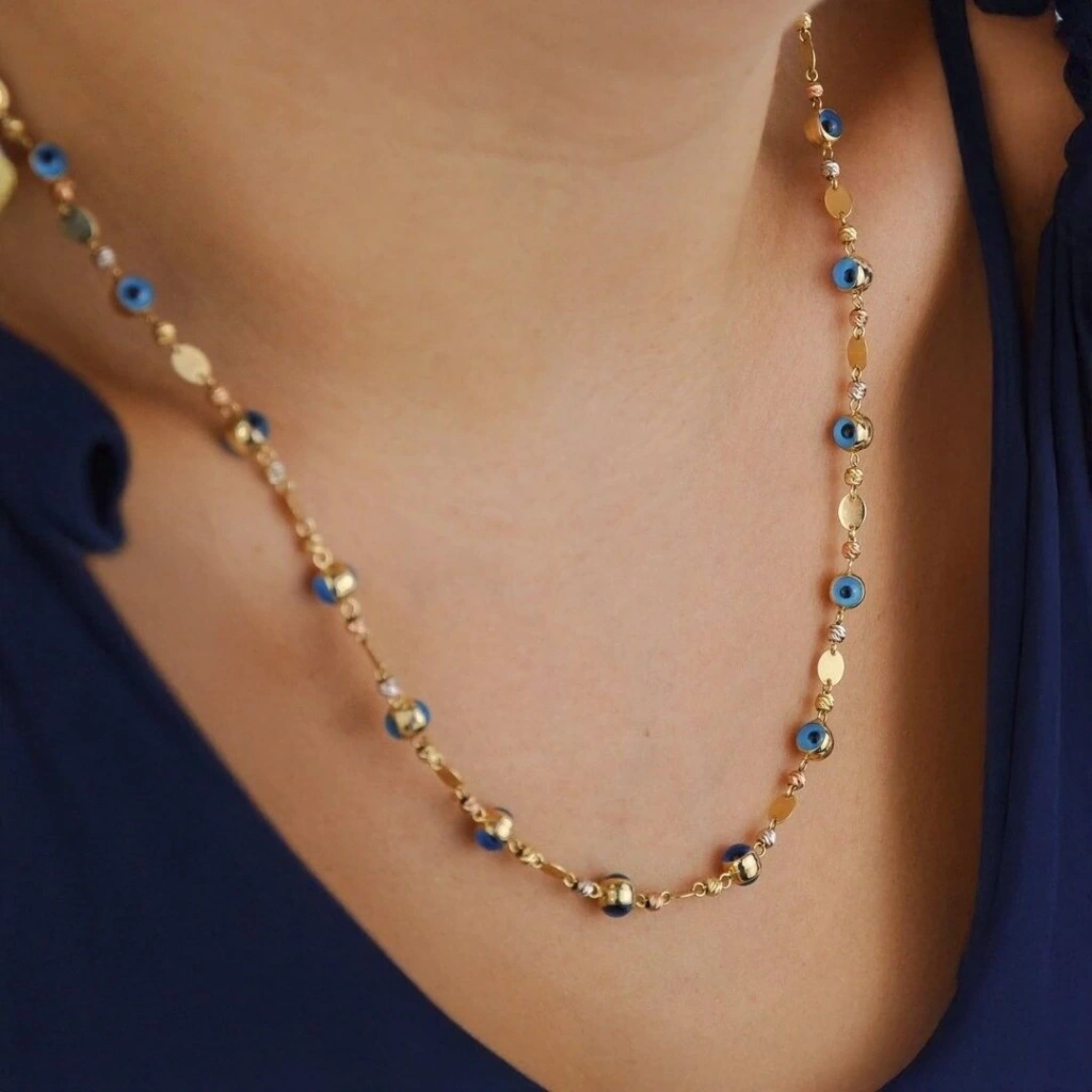 Evla Kuyumculuk 14 Ayar Altın Nazarlı Pullu Zincir 9,18 Gram