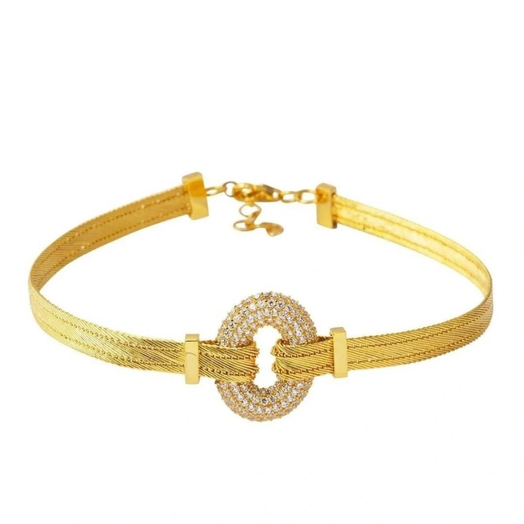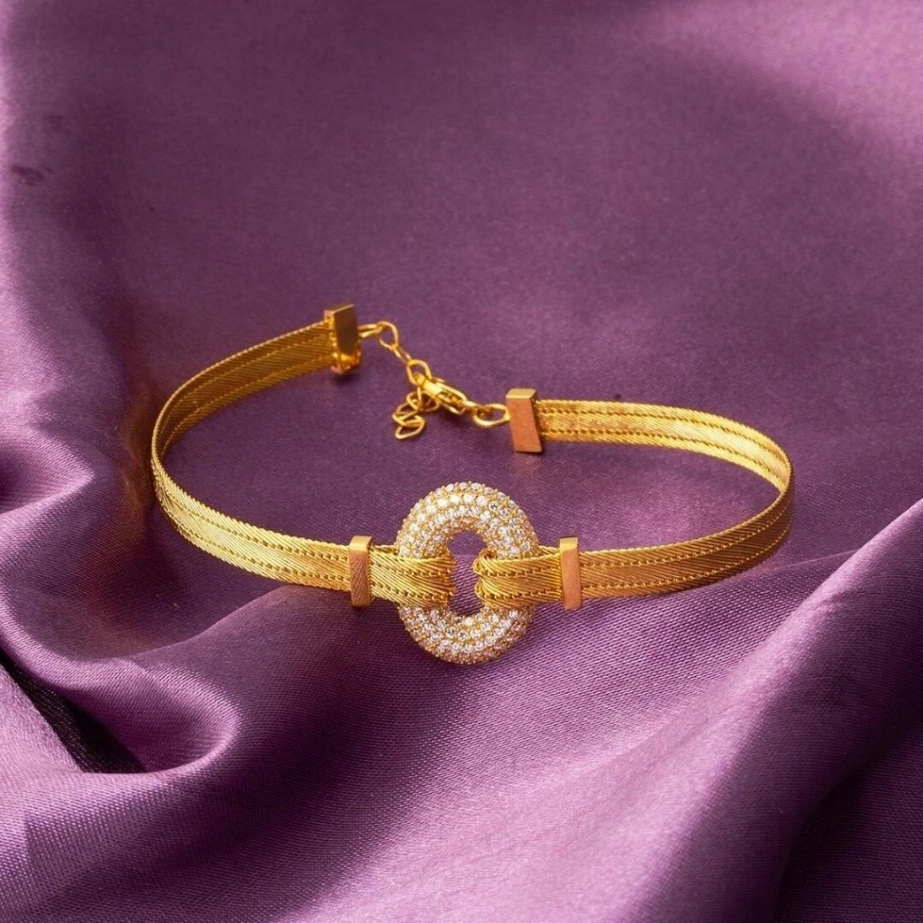 14 Ayar Altın Oval Halka Trabzon Hasır Bileklik, 7,95 gram ağırlığında olup, geleneksel Trabzon hasır işçiliği ile modern tasarımı bir araya getiriyor. Oval halka detayları, bilekliğe zarif bir dokunuş katarken, Swarovski taşları ile ışıltısını artırıyor.