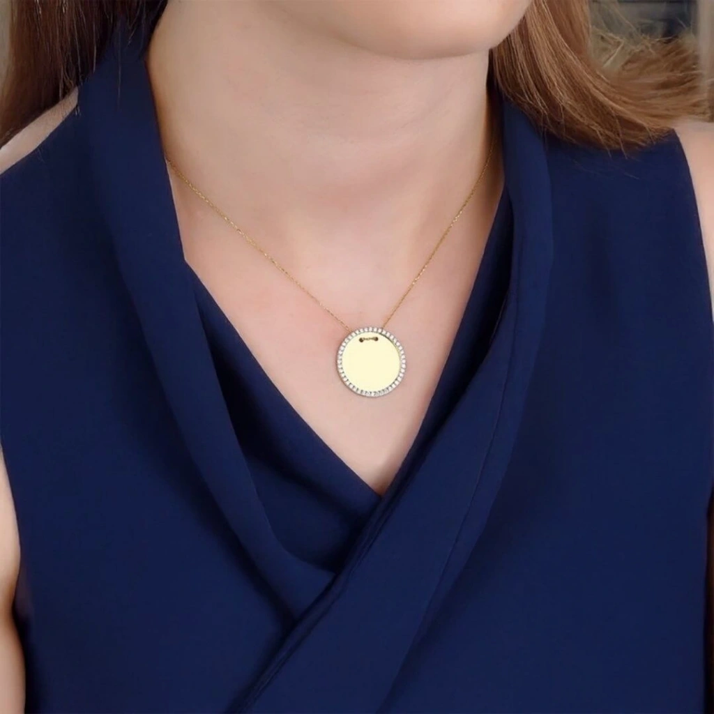 Kolyenin tasarımında yer alan plaka detayı, modern ve şık bir görünüm sağlar. Plakanın üzerindeki taşlar, kolyeye hareket ve ışıltı katarken aynı zamanda dikkat çekici bir detaydır. Bu taşlar, kolyenin özel ve göz alıcı bir parça olmasını sağlar.