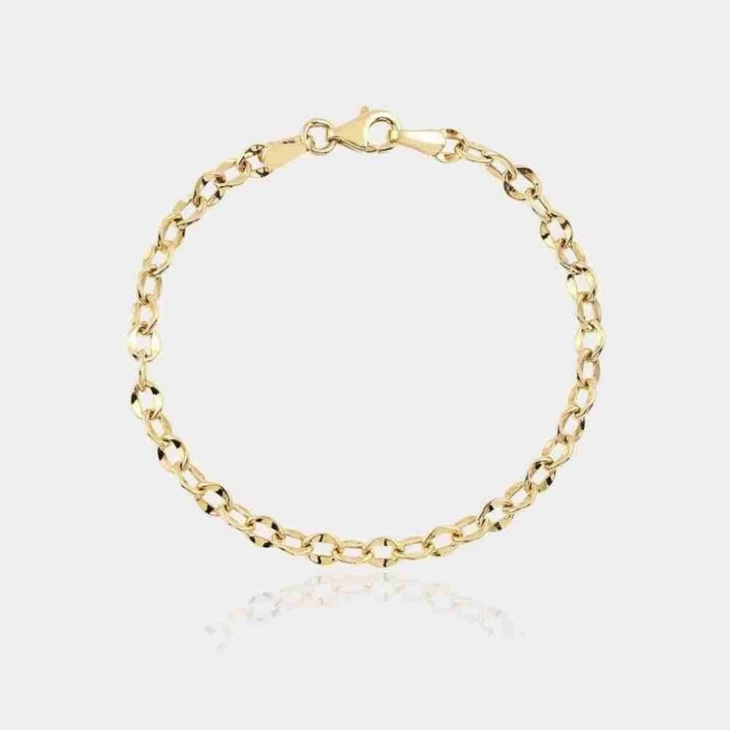 Evla Kuyumculuk’un bu şık bilekliği, çocuklarınızın bileklerini süslemek için mükemmel bir seçimdir. Sade altın renginde üretilen bileklik, üzerinde herhangi bir motif veya desen bulunmamaktadır. Bileklik, 14 ayar altın kullanılarak üretilmiştir.