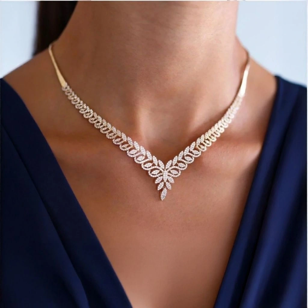 Kolye, 45 cm uzunluğundadır ve sarmaşık motifli zincir şeklindedir.