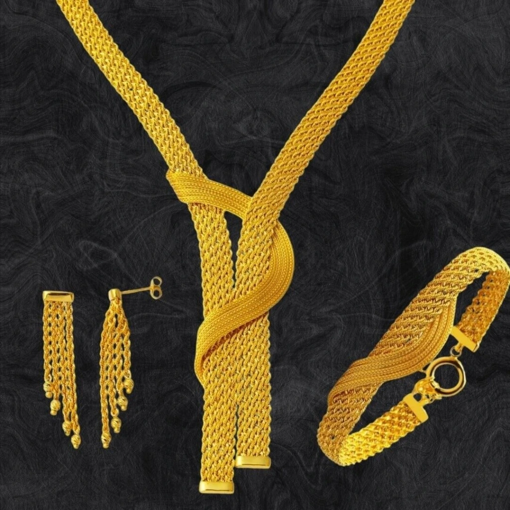 Evla Kuyumculuk’un 14 Ayar Altın Sarmal Örgülü Set Takımı 39,58 Gram modeli, modern ve zarif bir tasarıma sahip, her yaştan kadına hitap eden bir aksesuardır. Set takımı, sarmal deseninin modern görünümünü altınla buluşturmaktadır.