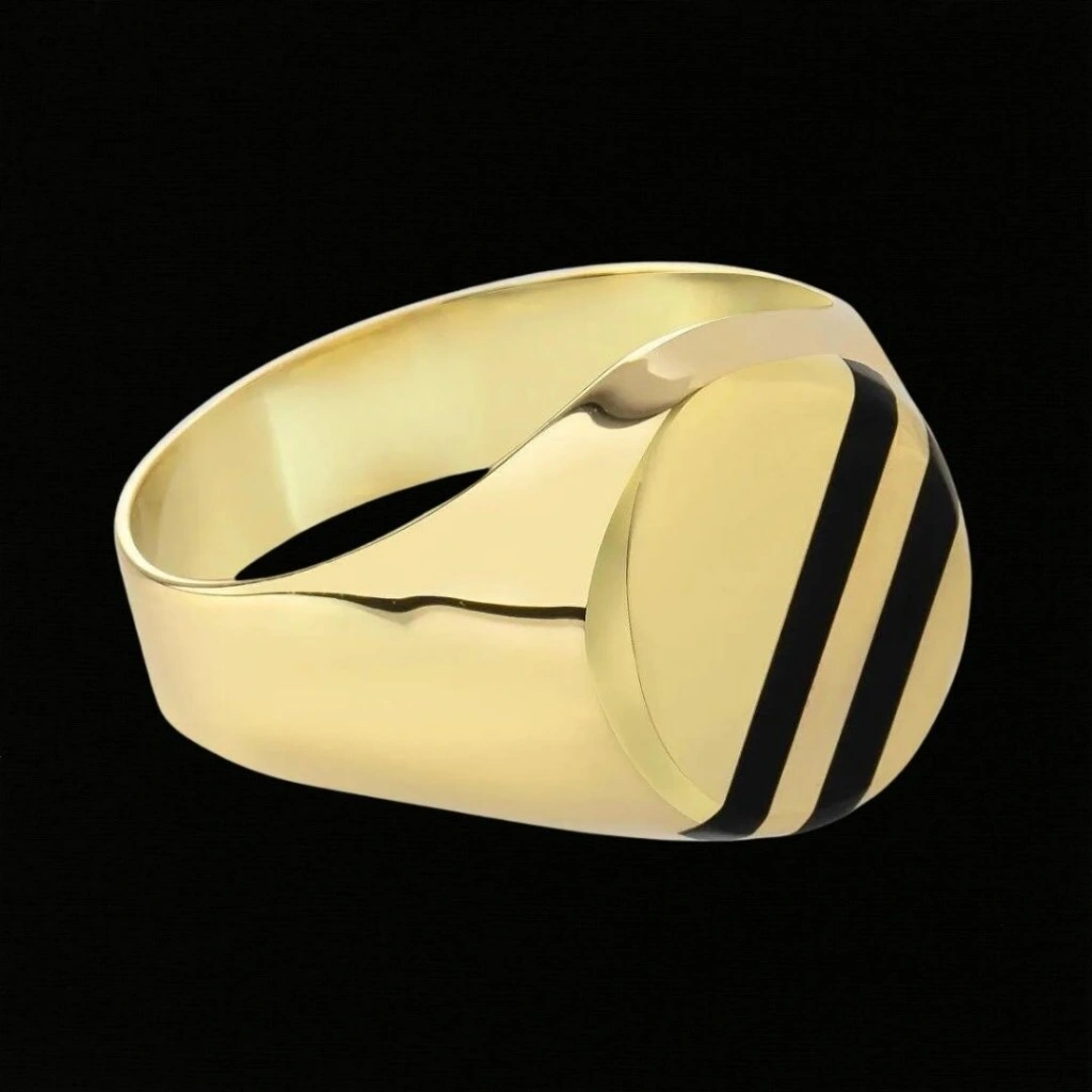 14 Ayar Altın Siyah Çift Şerit Erkek Yüzüğü
