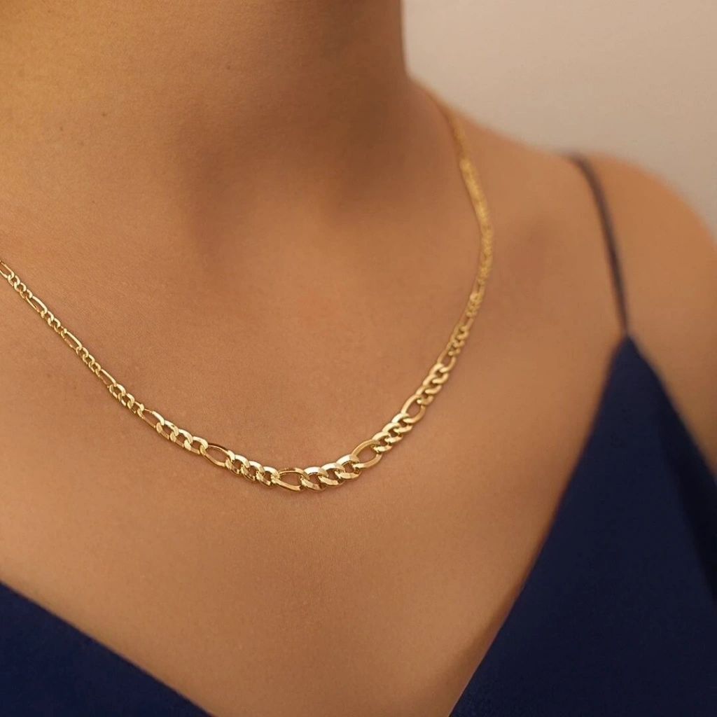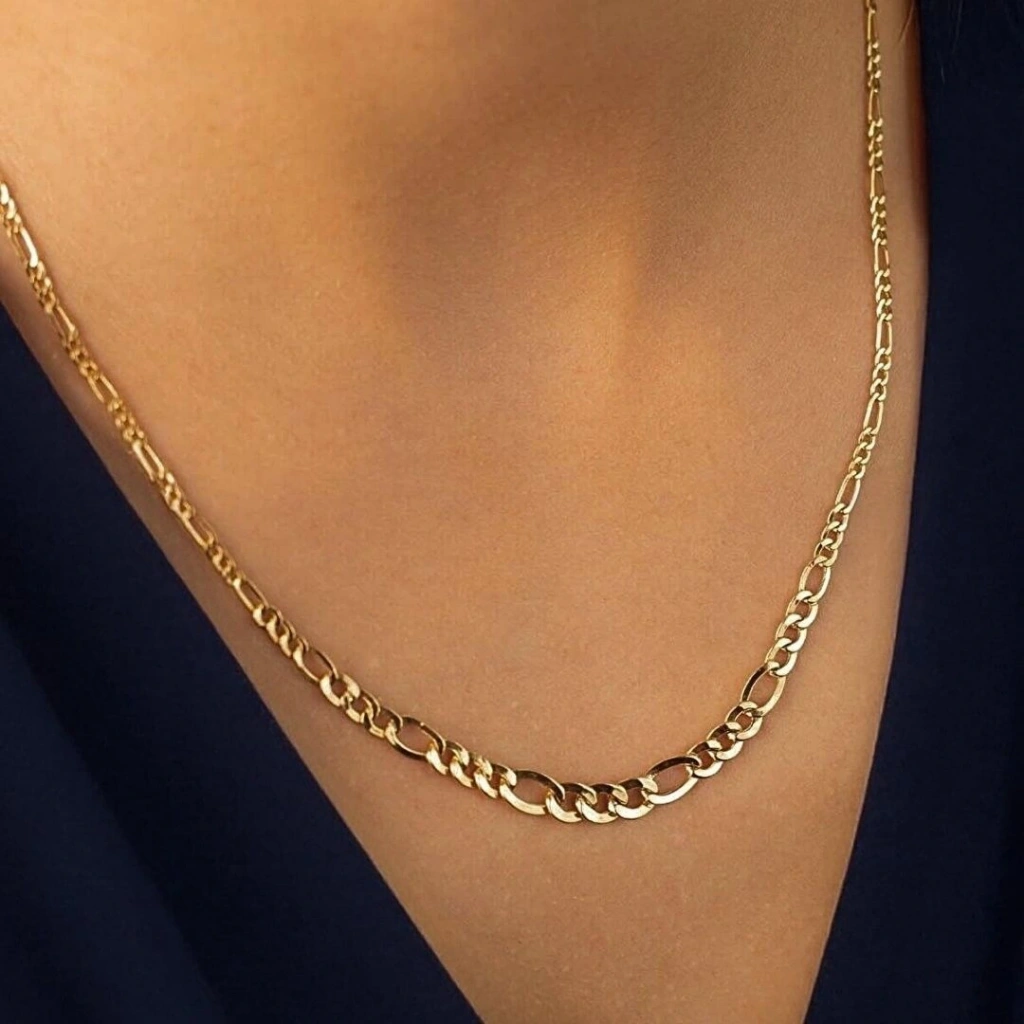 14 Ayar Altın Süzme Figaro Zincir 3,43 Gram: Evla Kuyumculuk olarak, şıklığı ve zarafeti bir araya getiren bir seçenek sunuyoruz: 14 Ayar Altın Süzme Figaro Zincir! Bu özel zincir, tarzınıza değer katmak için mükemmel bir tercih olacaktır. Bu benzersiz zincir, 14 ayar altın kullanılarak üretilmiştir. Altının parlaklığı ve kalitesi, bu tasarımı göz alıcı ve özgün kılmaktadır. Süzme Figaro zincirin incelikli detayları ve özenle işlenmiş yapısı, her bir halkanın mükemmel bir şekilde bir araya gelmesiyle oluşmaktadır. Bu zincir, size zarafeti ve şıklığı bir arada sunacaktır.