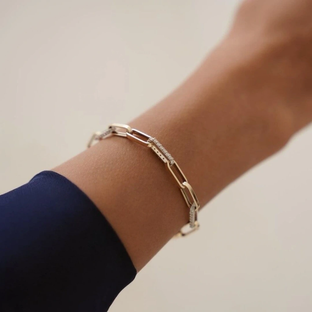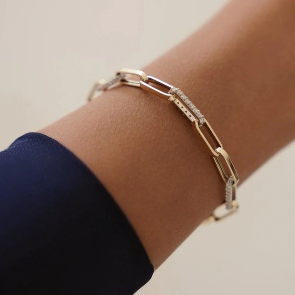 Ürün Özellikleri: 14 Ayar Altın Taşlı Ataç Bileklik- Materyal: 14 Ayar Altın