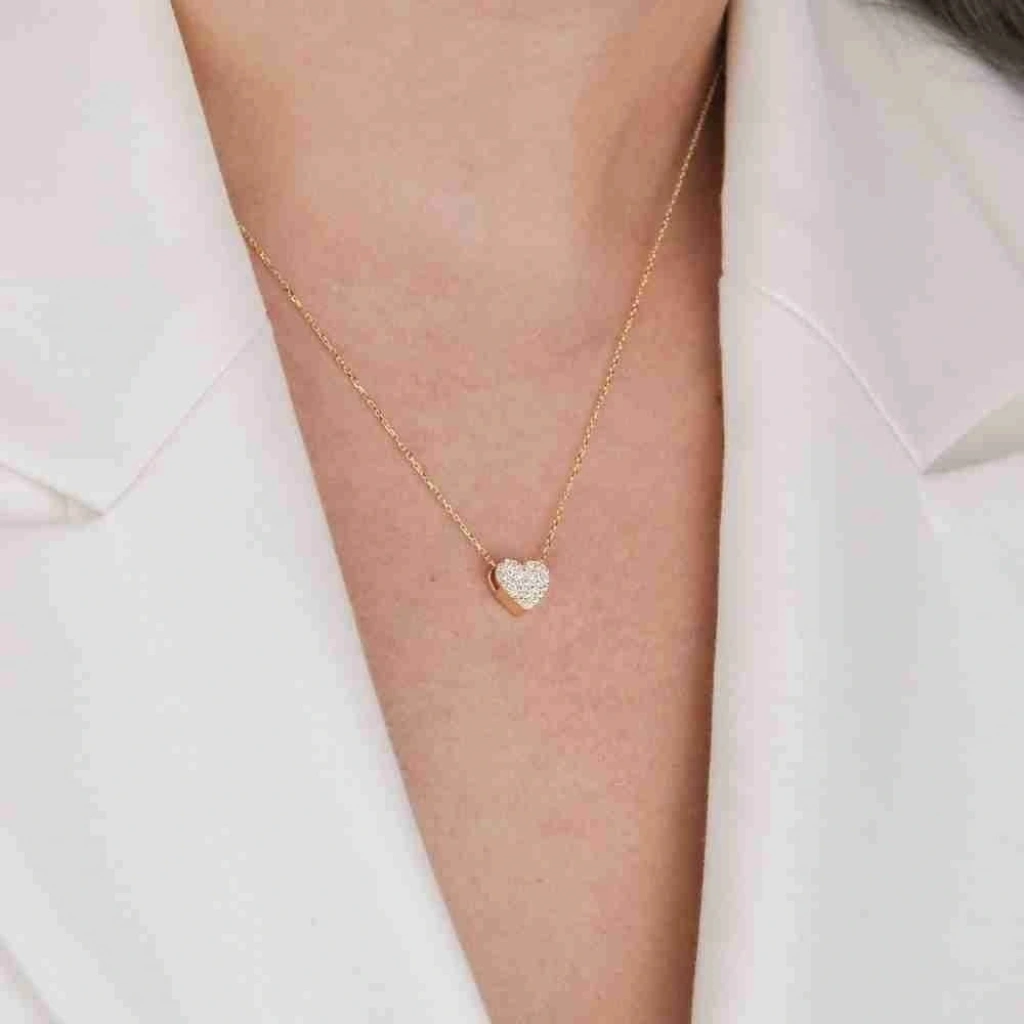 14 Ayar Altın Taşlı Kalp Kolye 1,65 Gram: Evla Kuyumculuk'un özgün ve romantik tasarımlarından biri olan14 Ayar Altın Taşlı Kalp Kolye, zarafeti ve duygusallığı bir araya getiriyor. Bu özel kolye, 1,65 gram ağırlığındaki 14 ayar altınla özenle işlenmiştir. Kolyenin kalp şeklindeki tasarımı, sevgi ve tutkuyu temsil ederken, taşlı detaylar da kolyeye ayrı bir parlaklık katmaktadır. Altının parlaklığı ise dikkat çekici bir şekilde öne çıkar. Evla Kuyumculuk, bu kolyeyi özgün bir stil ile tasarlamış ve her ayrıntısına özen göstermiştir.