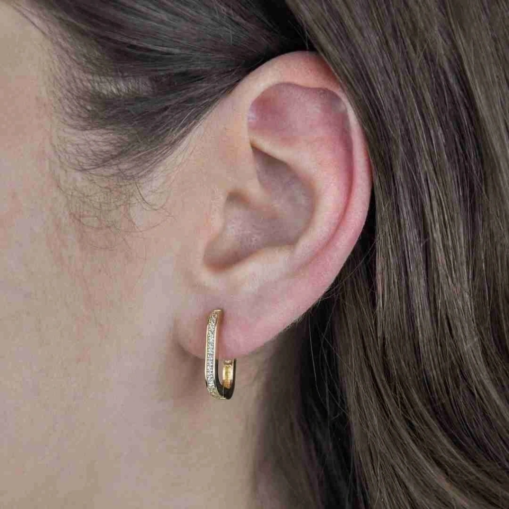 14 Ayar Altın Taşlı Kare Halka Küpe 3,85 Gram: 14 Ayar Altın Taşlı Kare Halka Küpe, göz alıcı ve zarif bir mücevherdir. Bu özel tasarım, özenle seçilmiş 14 ayar altın ile yapılmıştır ve 3,85 gram ağırlığındadır. Bu halka küpe, taş detaylarıyla dikkat çekmektedir. Kare şeklindeki taşlar, küpenin yüzeyinde büyüleyici bir parlaklık ve renk oyunu sunar. Bu taşlar, ışığı yansıtarak küpeye hareket ve canlılık katmaktadır.