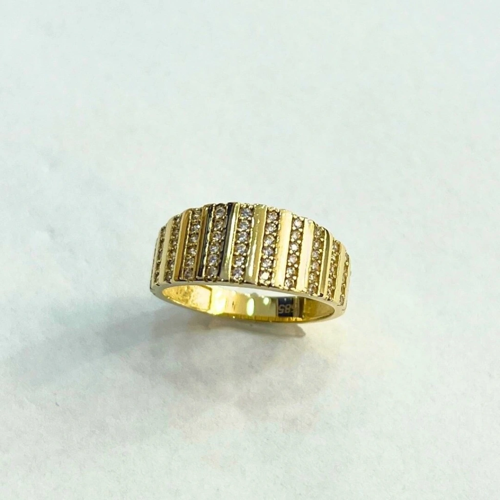 14 Ayar Altın Taşlı Şerit Yüzük, kaliteli altın ve özenli işçilikle üretilmiştir. Şerit tasarımı, yüzüğe zarif ve modern bir görünüm kazandırırken, taşlarla süslenmiş detaylar ekstra parlaklık ve şıklık sağlar. Yüzüğün sade ama etkileyici yapısı, her türlü kombine uyum sağlar ve parmaklarınızda zarif bir duruş sergiler.