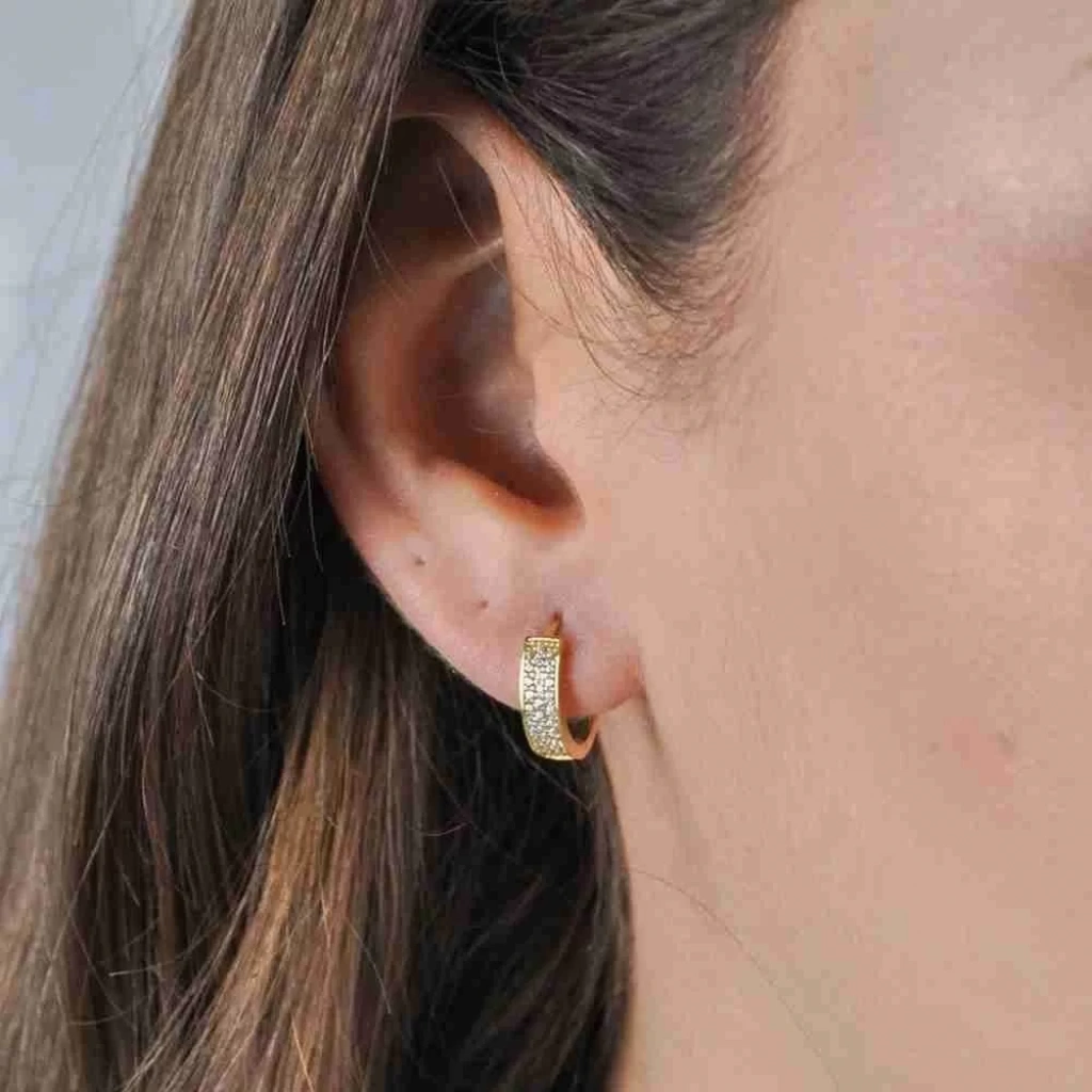 14 Ayar Altın Çift Sıra Taşlı Halka Küpe