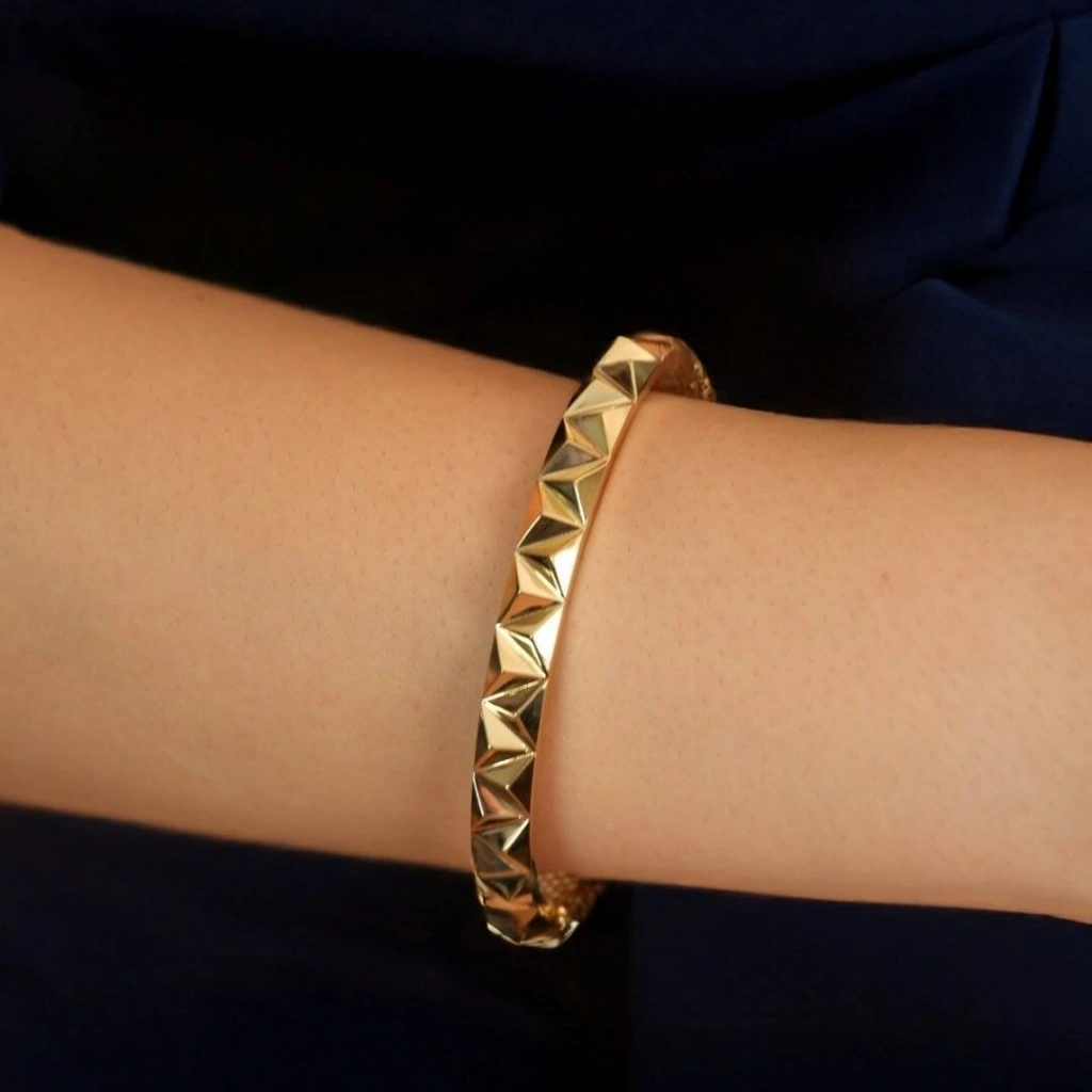 Altın Üçgen Kelepçe, modern geometrik tasarımıyla zarif ve şık bir duruş sergiler. 14 ayar altından üretilmiş bu kelepçe, hem günlük kullanım hem de özel davetler için ideal bir seçenektir.