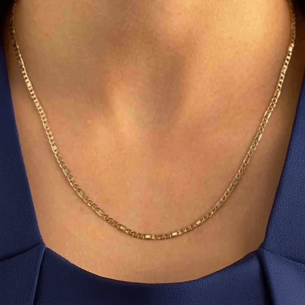 Bu 14 Ayar Altın Valentino Zincir, zarifliği ve kalitesiyle her tarzla uyum sağlar ve uzun ömürlü kullanım için idealdir.14 Ayar Altın Valentino Zincir