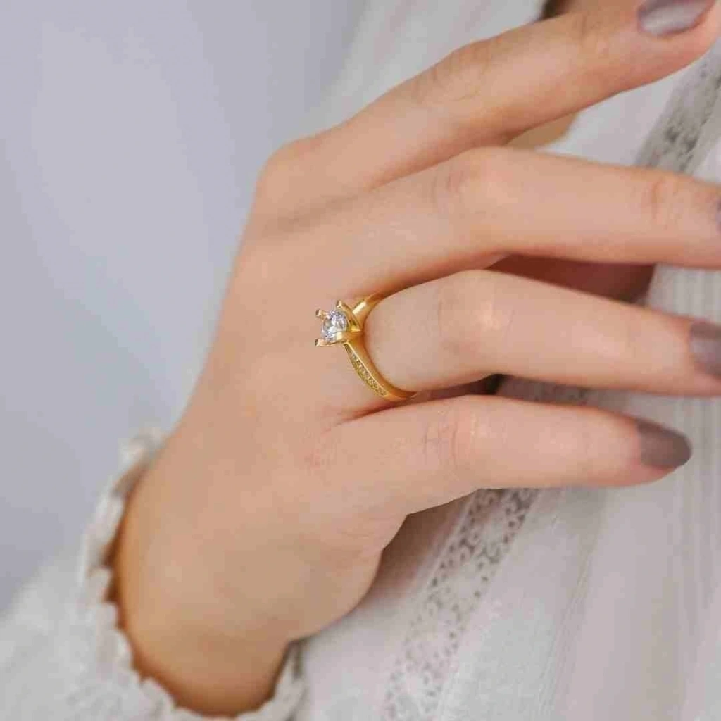 14 Ayar Altın Yan Taşlı Yüzük 2,82 Gram: Evla Kuyumculuk, göz kamaştıran ve şıklığıyla dikkat çeken 14 Ayar Altın Yan Taşlı Yüzük ile sizleri büyülemeye davet ediyor. Bu özel yüzük, 2,82 gram ağırlığındaki 14 ayar altın ile üretilmiştir. Yan taş detaylarıyla dikkat çeken bu yüzük, her adımda size özgü bir tarz sunacak. Altının parlaklığı ve yan taşların ışıltısı bir araya gelerek bu yüzüğe büyüleyici bir görünüm kazandırıyor.