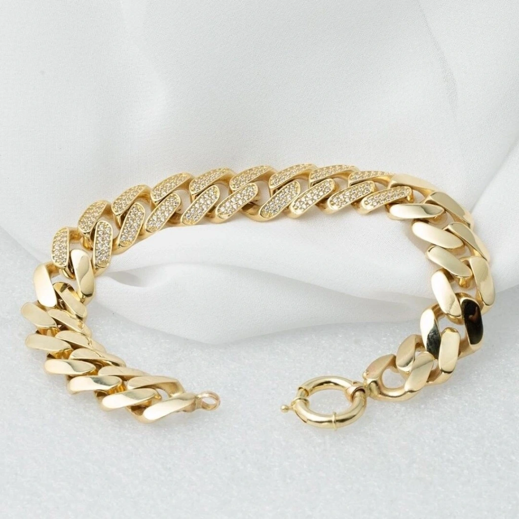 Evla Kuyumculuk'un eşsiz koleksiyonunda yer alan 14 Ayar Altın Yarım Taşlı Gurmet Bileklik, gram olarak 22,61 gram gelmektedir zarafetin ve lüksün mükemmel bir örneğidir.