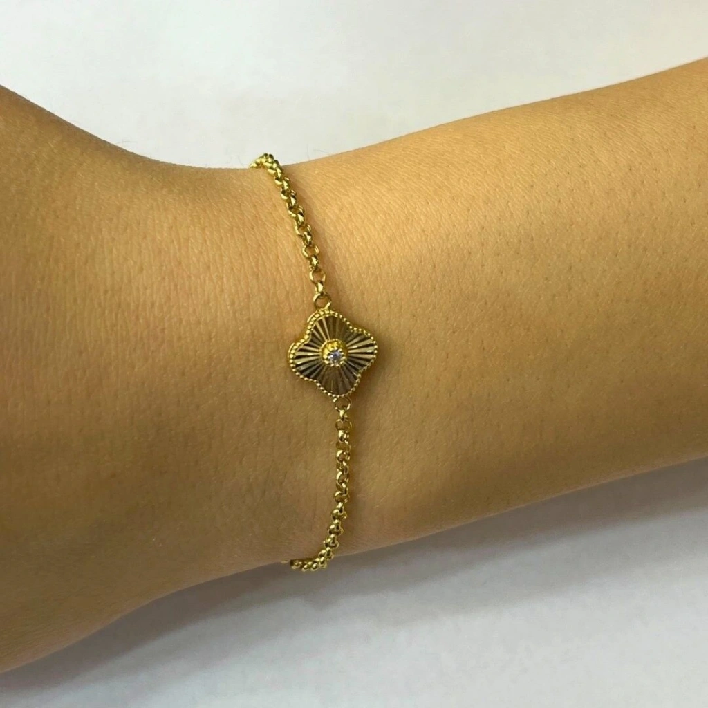 - Tasarım: Dört yapraklı yonca figürü, şans ve zarafet sembolü 14 Ayar Altın Yonca Bileklik