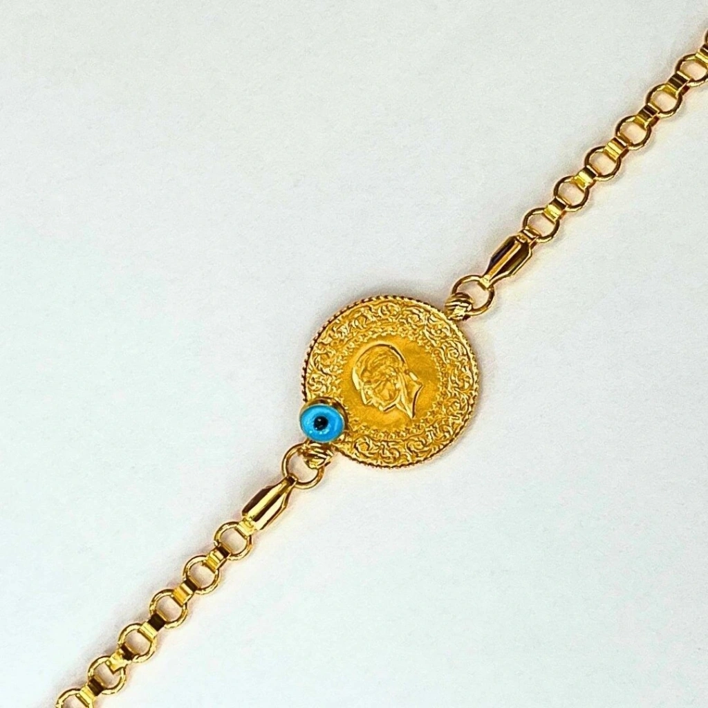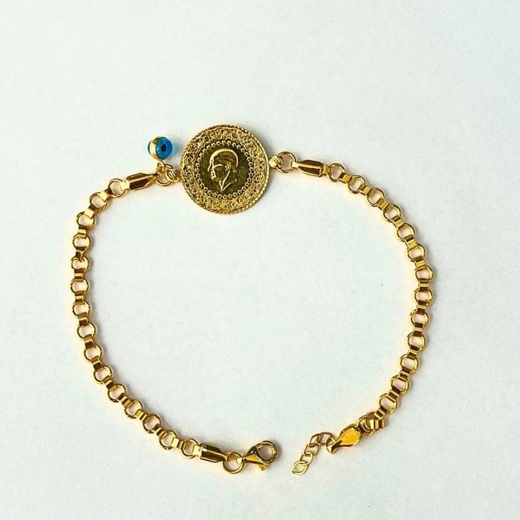 14 Ayar Ezme Çeyrekli Bileklik, özgün tasarımı ve yatırım değeri ile dikkat çeken bir takıdır. 14 ayar altının dayanıklılığı ve çeyrek altının klasik değeri, bu bileziği hem estetik hem de ekonomik olarak cazip hale getirir. Günlük kullanım için yeterince zarif, özel günlerde ise yeterince gösterişli olan bu bileklik, stil sahibi kadınların vazgeçilmez aksesuarı olacaktır. Sevdiklerinize özel bir hediye olarak da tercih edebilirsiniz.