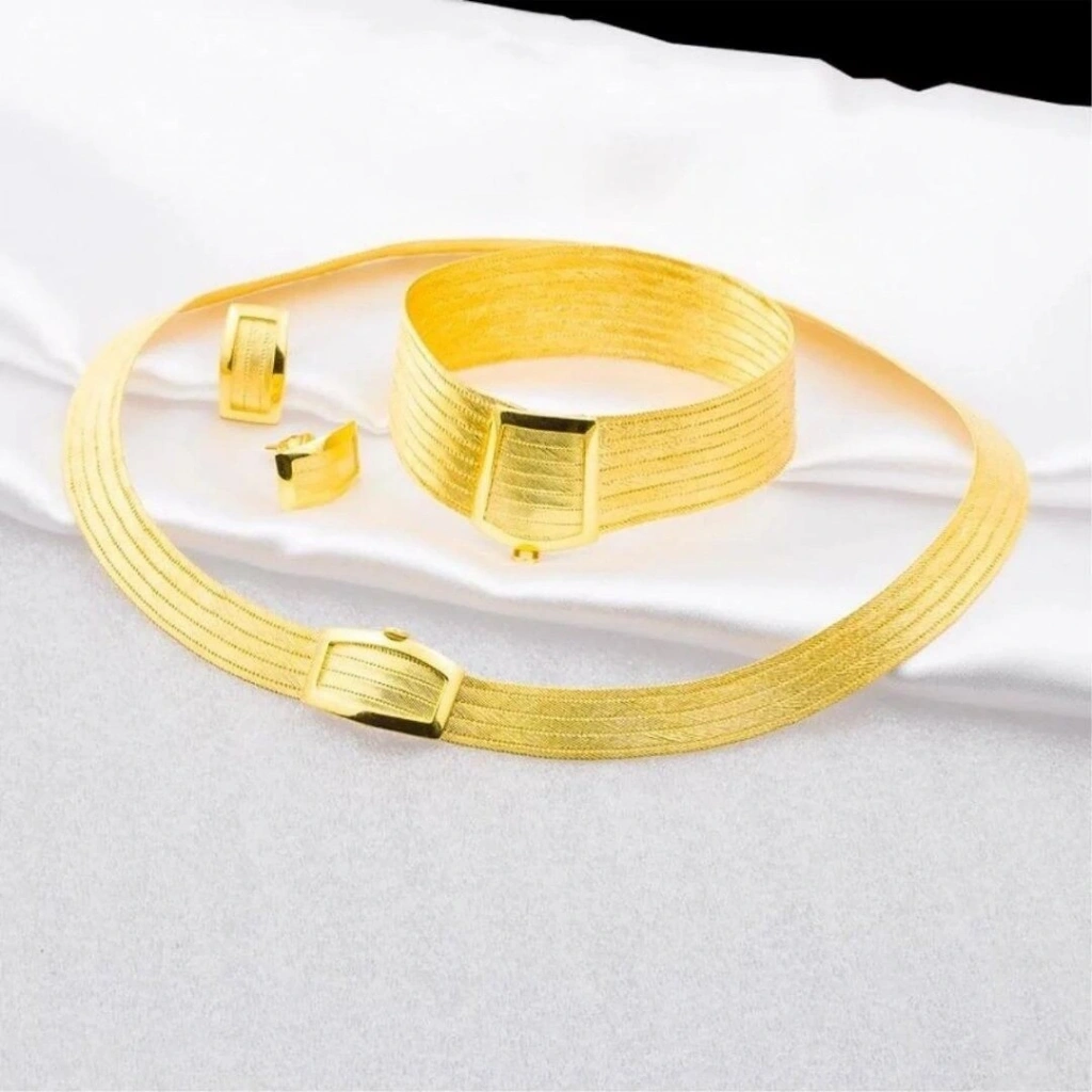 Evla Kuyumculuk, estetik tasarımı ve yüksek kaliteli malzemeleriyle öne çıkan 22 Ayar Altın Sade 9 Sıra Trabzon Hasır Set Takımı ile büyüleyici bir seçenek sunmaktadır. Bu özel takım, özenle üretilmiş yüksek kaliteli 22 ayar altından yapılmıştır. Setin temel parçaları, Trabzon hasırı deseniyle süslenmiş altın zincirlerden oluşmaktadır. Trabzon hasırı, el işçiliğiyle örülen ve takıya zarafet ve estetik katmayı amaçlayan özel bir örgü tekniğidir. Her bir parça, usta eller tarafından özenle işlenmiş ve detaylandırılmıştır, bu sayede takımın sadeliği ve göz alıcılığı ön plana çıkarılmıştır.